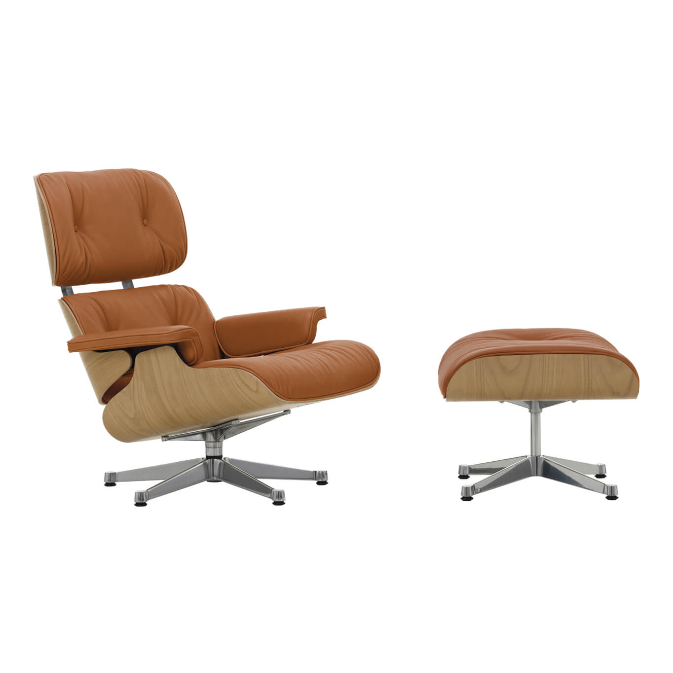 EAMES LOUNGE & OTTOMAN Cuir Premium cognac / Châtaignier naturel