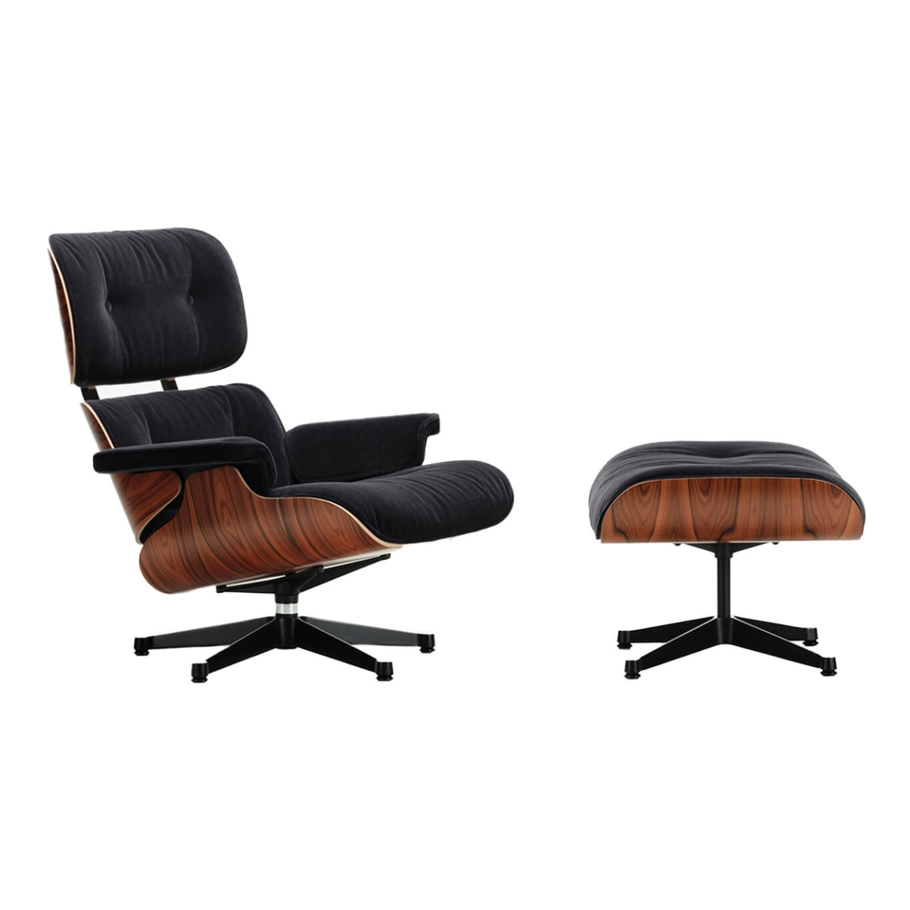 Fauteuil EAMES LOUNGE & OTTOMAN Calma anthracite foncé / Palissandre santos VITRA