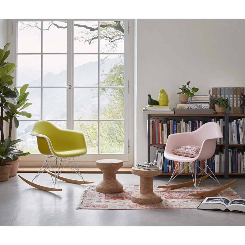 Les Plastic Armchairs ont été présentés pour la première fois par Charles et Ray Eames dans le cadre du concours   « Low Cost Furniture Design » organisé par le Museum of Modern Art de New York. Ces petits fauteuils à bascule furent édités pour la première fois en 1950. La coque aux lignes organiques, en matière synthétique, très confortable, a été combinée par la suite à plusieurs piètements différents. Sur ce modèle de fauteuil RAR à bascule, elle est associée à quatre pieds en croisillons de fil d'acier fixés sur deux patins de bois. Dans leur version actuelle en polypropylène, les Eames Plastic Armchairs RAR (Rocking Armchair Rod base) offrent un confort encore amélioré. Edités par Vitra, ces fauteuils accueillants et confortables sont déclinés dans plusieurs couleurs et trouveront une place dans de nombreuses pièces de votre maison.