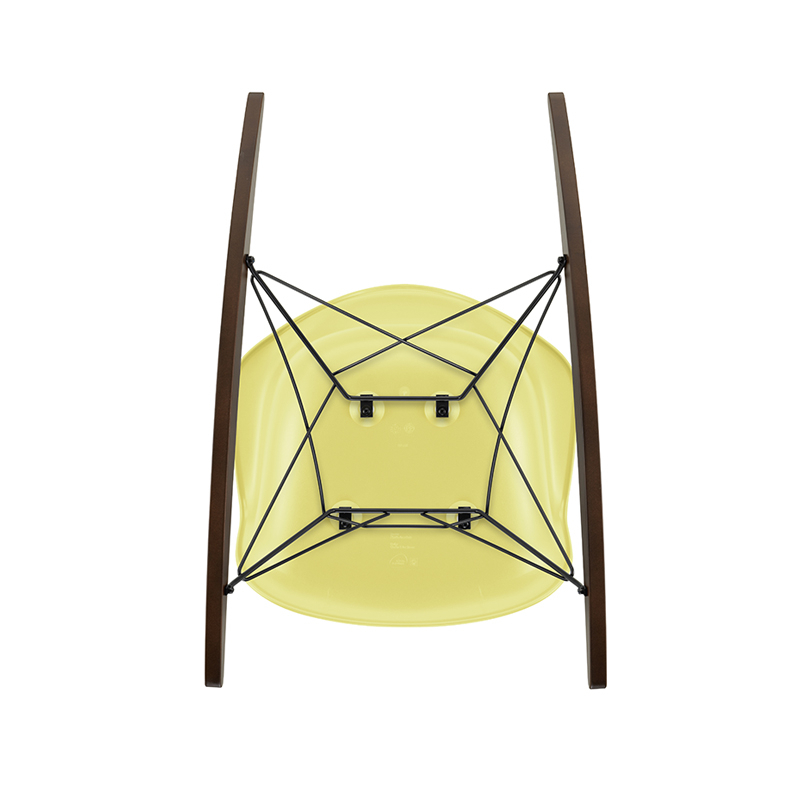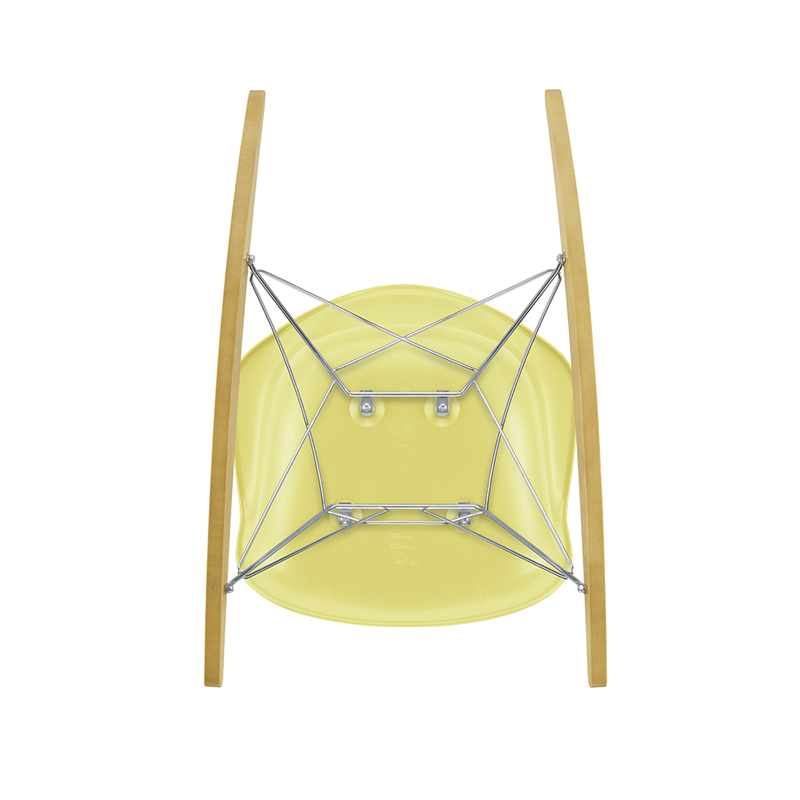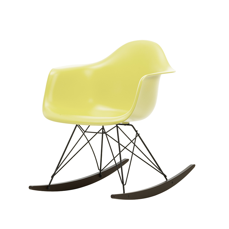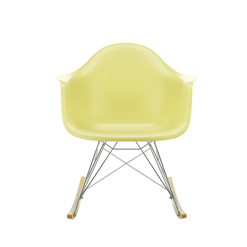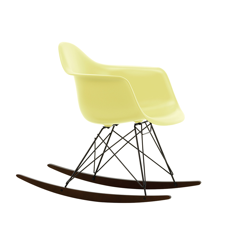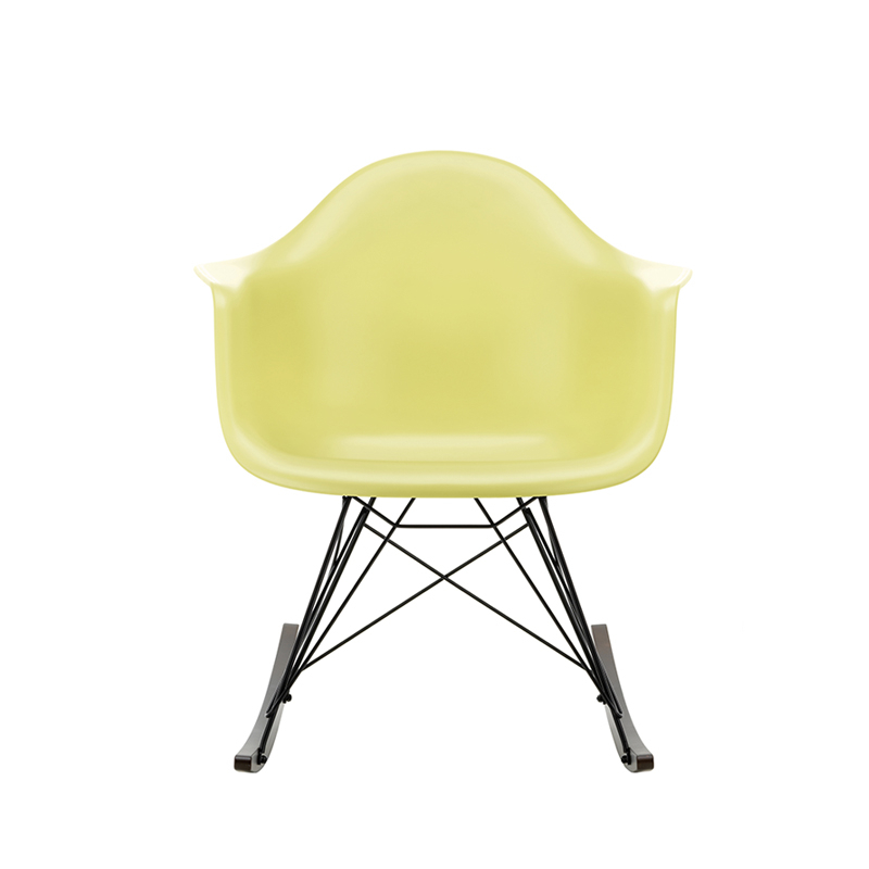 Les Plastic Armchairs ont été présentés pour la première fois par Charles et Ray Eames dans le cadre du concours   « Low Cost Furniture Design » organisé par le Museum of Modern Art de New York. Ces petits fauteuils à bascule furent édités pour la première fois en 1950. La coque aux lignes organiques, en matière synthétique, très confortable, a été combinée par la suite à plusieurs piètements différents. Sur ce modèle de fauteuil RAR à bascule, elle est associée à quatre pieds en croisillons de fil d'acier fixés sur deux patins de bois. Dans leur version actuelle en polypropylène, les Eames Plastic Armchairs RAR (Rocking Armchair Rod base) offrent un confort encore amélioré. Edités par Vitra, ces fauteuils accueillants et confortables sont déclinés dans plusieurs couleurs et trouveront une place dans de nombreuses pièces de votre maison.