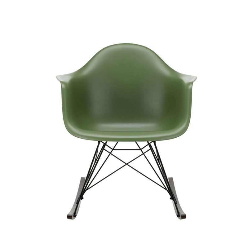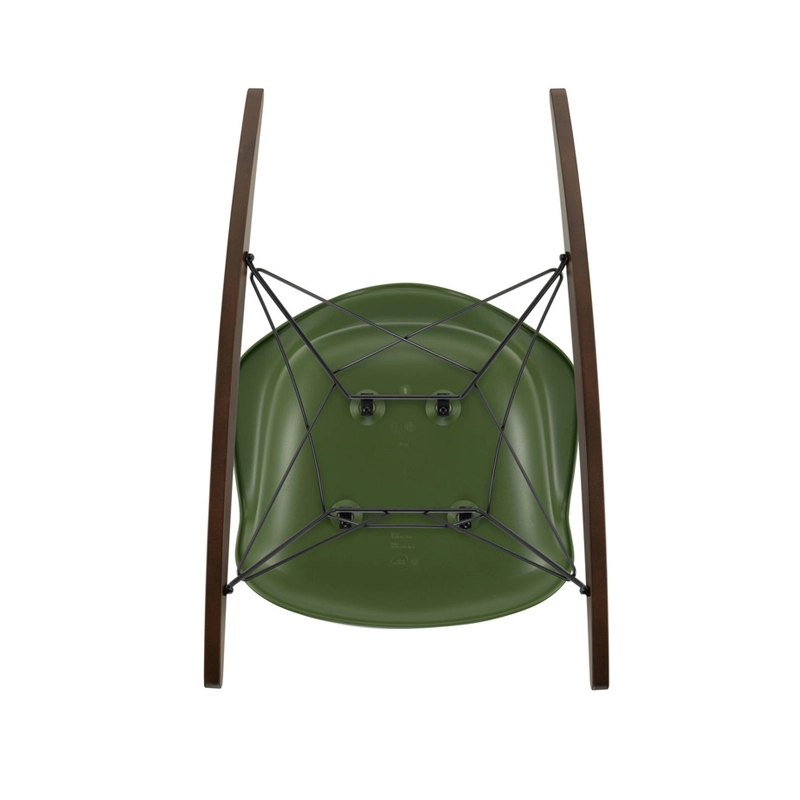 Les Plastic Armchairs ont été présentés pour la première fois par Charles et Ray Eames dans le cadre du concours   « Low Cost Furniture Design » organisé par le Museum of Modern Art de New York. Ces petits fauteuils à bascule furent édités pour la première fois en 1950. La coque aux lignes organiques, en matière synthétique, très confortable, a été combinée par la suite à plusieurs piètements différents. Sur ce modèle de fauteuil RAR à bascule, elle est associée à quatre pieds en croisillons de fil d'acier fixés sur deux patins de bois. Dans leur version actuelle en polypropylène, les Eames Plastic Armchairs RAR (Rocking Armchair Rod base) offrent un confort encore amélioré. Edités par Vitra, ces fauteuils accueillants et confortables sont déclinés dans plusieurs couleurs et trouveront une place dans de nombreuses pièces de votre maison.
