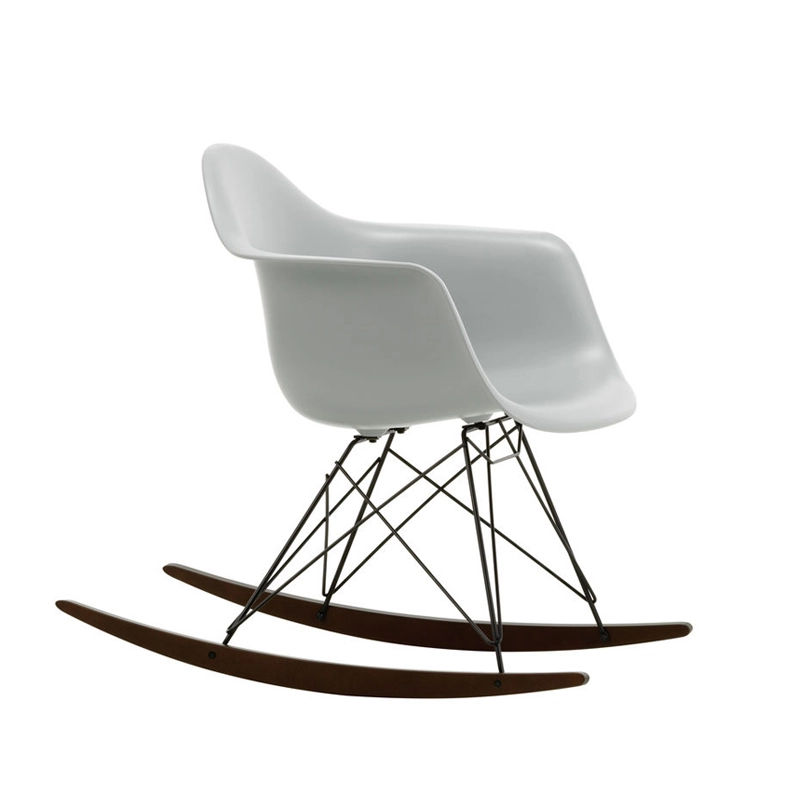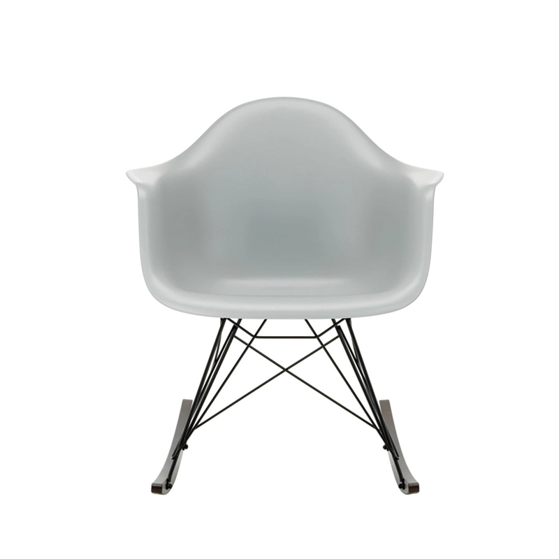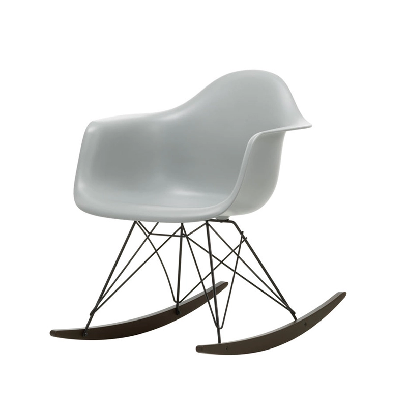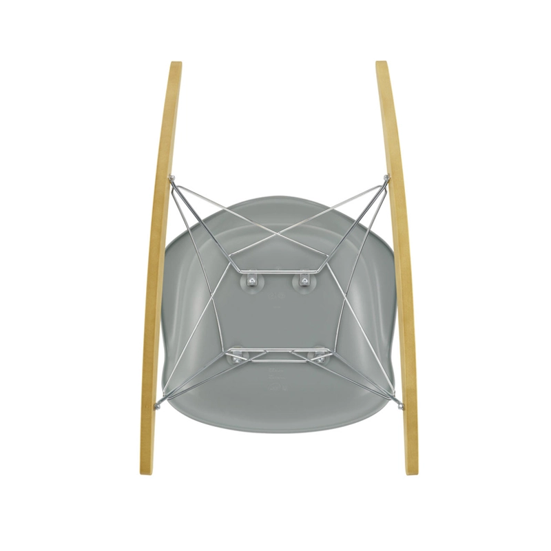 Les Plastic Armchairs ont été présentés pour la première fois par Charles et Ray Eames dans le cadre du concours   « Low Cost Furniture Design » organisé par le Museum of Modern Art de New York. Ces petits fauteuils à bascule furent édités pour la première fois en 1950. La coque aux lignes organiques, en matière synthétique, très confortable, a été combinée par la suite à plusieurs piètements différents. Sur ce modèle de fauteuil RAR à bascule, elle est associée à quatre pieds en croisillons de fil d'acier fixés sur deux patins de bois. Dans leur version actuelle en polypropylène, les Eames Plastic Armchairs RAR (Rocking Armchair Rod base) offrent un confort encore amélioré. Edités par Vitra, ces fauteuils accueillants et confortables sont déclinés dans plusieurs couleurs et trouveront une place dans de nombreuses pièces de votre maison.