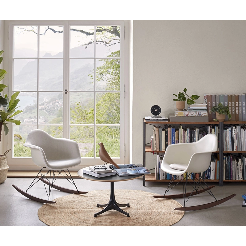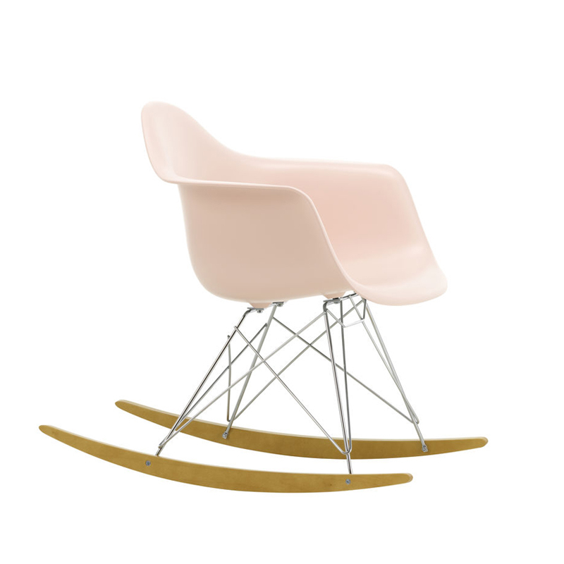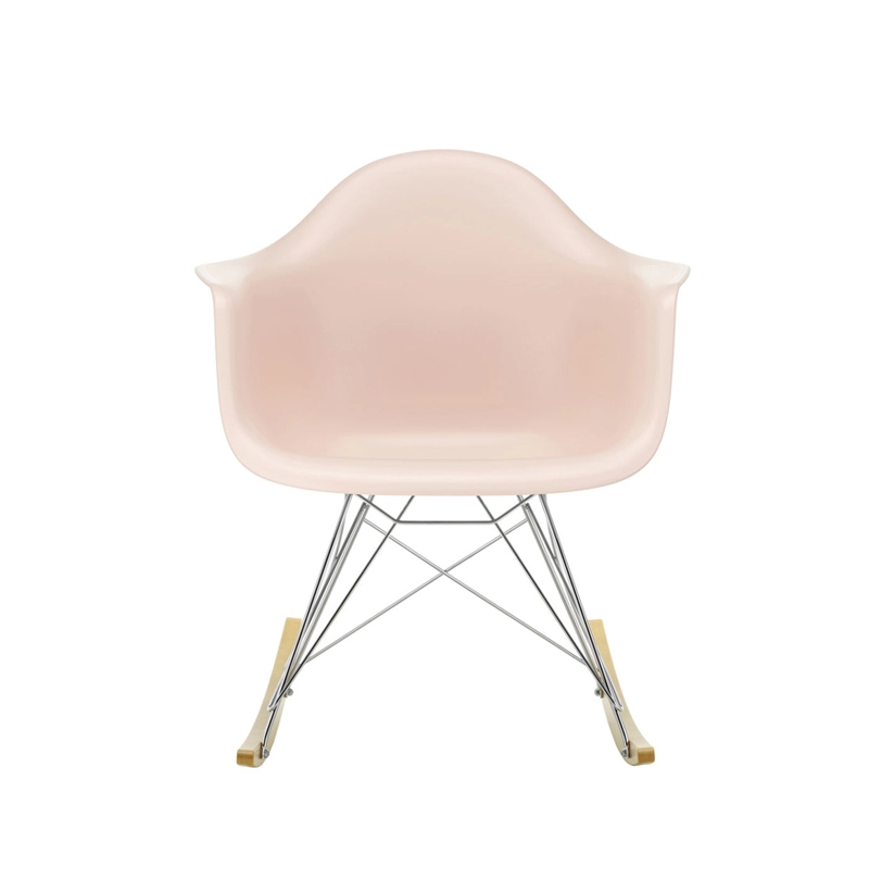 Les Plastic Armchairs ont été présentés pour la première fois par Charles et Ray Eames dans le cadre du concours   « Low Cost Furniture Design » organisé par le Museum of Modern Art de New York. Ces petits fauteuils à bascule furent édités pour la première fois en 1950. La coque aux lignes organiques, en matière synthétique, très confortable, a été combinée par la suite à plusieurs piètements différents. Sur ce modèle de fauteuil RAR à bascule, elle est associée à quatre pieds en croisillons de fil d'acier fixés sur deux patins de bois. Dans leur version actuelle en polypropylène, les Eames Plastic Armchairs RAR (Rocking Armchair Rod base) offrent un confort encore amélioré. Edités par Vitra, ces fauteuils accueillants et confortables sont déclinés dans plusieurs couleurs et trouveront une place dans de nombreuses pièces de votre maison.