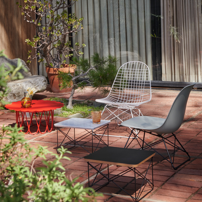 Charles Eames, décédé à 71 ans en 1978 à Saint-Louis, sa ville natale, est l'une des figures emblématiques du design du XXe siècle, ayant su orienter ce domaine vers la production de masse. Architecte de formation, il remporte en 1940, avec Eero Saarinen, le premier prix du concours de design organique du MoMA de New York, ce qui lui permet d'enseigner le design industriel à la Cranbrook Academy. C'est là qu'il rencontre Ray, qui y étudie la peinture. Charles et Ray Eames se marient en 1941 et s'installent à Los Angeles, où ils commencent à expérimenter ensemble les techniques de moulage tridimensionnel du contreplaqué, dans le but de créer des chaises à la fois confortables et abordables.  Leur développement d'attelles et de civières en contreplaqué pour l’armée américaine les pousse à perfectionner cette technologie, qui sera utilisée pour la production de mobilier par Herman Miller (en 1946) puis par Vitra (en 1957). En 1948, Charles et Ray Eames participent au concours « Low-Cost Furniture » du MoMA, et en 1949, ils construisent la maison Eames, qui devient leur résidence privée. Leur célèbre fauteuil Eames Lounge Chair a été commercialisé à plus de 6 millions d'exemplaires depuis sa création en 1956, tandis que l'Aluminium Chair, qui a donné naissance à l'Aluminium Group en 1958, ainsi que le fauteuil pivotant Soft Pad avec son repose-pieds (1969), continuent de séduire les amateurs de design et sont même garantis pendant 30 ans. En plus de leur travail dans le mobilier et l'architecture, Charles et Ray Eames explorent régulièrement d'autres domaines comme le graphisme, la photographie, la réalisation de films et d'expositions. Pour Vitra, la collaboration avec Charles et Ray Eames est d'une importance fondamentale. C'est avec la production de leurs créations en 1957 que l'histoire de Vitra en tant que fabricant de mobilier commence. Toutefois, l'impact du couple ne se limite pas seulement à leurs produits ; leur vision du design continue de façonner les valeurs et l'orientation de l'entreprise, même aujourd'hui. La philosophie de conception de l'ensemble de la collection Eames influence toujours les valeurs, l'orientation et les objectifs de Vitra. Cela se manifeste particulièrement dans la question récurrente que se pose l'entreprise lors de décisions importantes en matière de design : « Que diraient Charles et Ray ? » Au cours de leur vie commune, le couple a donné des réponses lors de leurs voyages en Europe et de leurs retours en Californie. De nombreux éléments rapportés de voyage, comme le célèbre Eames House Bird, peuvent être retrouvés dans la maison Eames.