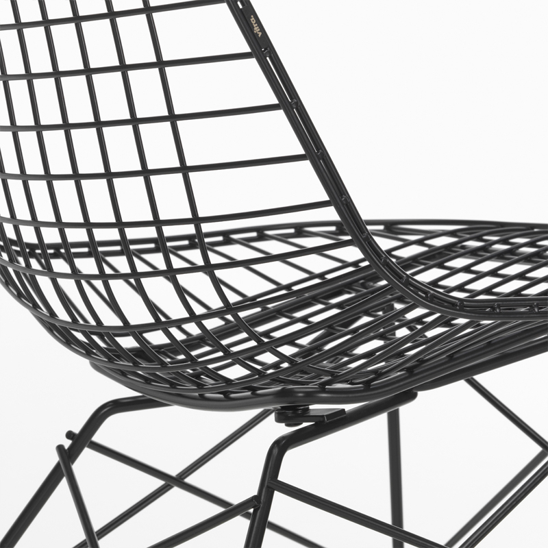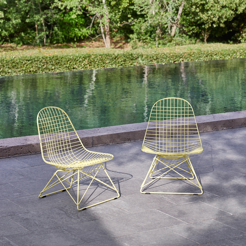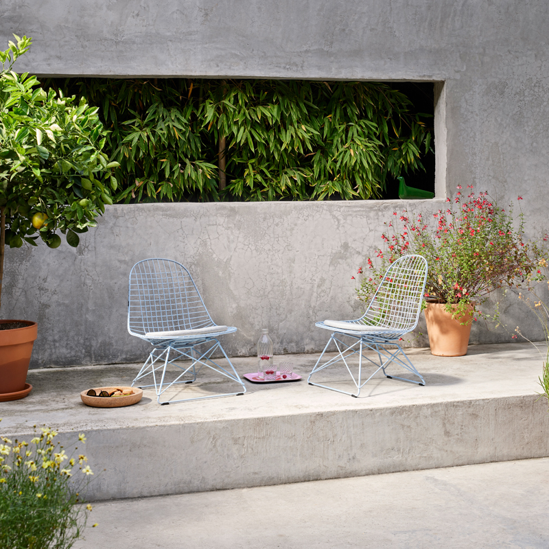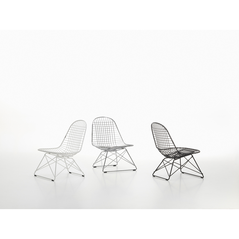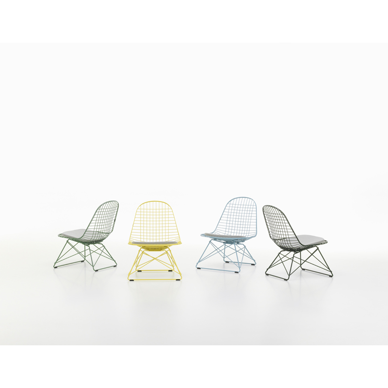 Conçue par Charles et Ray Eames à partir de fils d'acier soudés, la Wire Chair allie légèreté transparente et sophistication technologique. Editée par Vitra, la Wire Chair est désormais disponible avec une nouvelle base en hauteur lounge : le fauteuil Eames Wire Chair LKR (Lounge Height K-Shell R-Wire Base).  Les fauteuils LKR ont une finition époxy ou chromée. Les modèles avec une finition thermolaquée sont adaptés à un usage en intérieur et en extérieur. Parfait pour le jardin ou le salon, Le fauteuil LKR est disponible dans les mêmes finitions que la chaise DKR, incluant les couleurs printanières proposées par Vitra, sur la base de la palette conçue par Charles & Ray Eames : Citron, bleu ciel, vert foncé et Eames Seafoam Green.