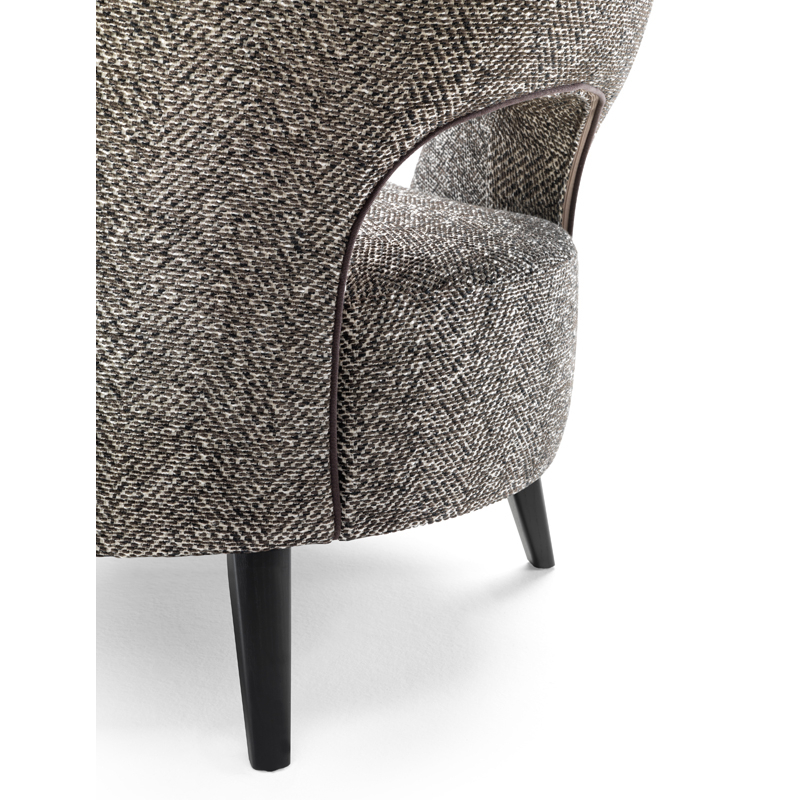 Ermione 20 Flexform Mood est un fauteuil passe-partout qui s’intègre élégamment dans n’importe quel contexte. Il se démarque par un dossier rembourré de forme enveloppante, allégé par une partie ouverte au niveau de l'assise. Le piétement composé d'élégants pieds en fonte d'aluminium ou en frêne massif, tous deux disponibles en une profusion de finitions raffinées, souligne les lignes délicates et le style rétro qui distinguent le fauteuil