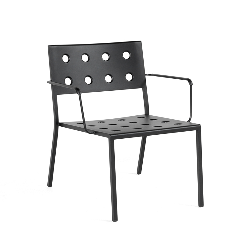 Balcony est une collection de mobilier pour extérieur conçue par les designers Ronan et Erwan Bouroullec pour la marque Hay. Le design carré est adouci par les trous et les bords arrondis, qui donnent non seulement à la collection une expression distinctive, mais aussi renforcent la construction. Toute la collection Balcony est réalisée en acier revêtu de poudre qui reçoit en plus un traitement contre la corrosion. Cette double finition permet une résistance et une durabilité optimale. Déclinée en plusieurs couleurs, la collection de meubles outdoor Balcony est parfaitement adaptée aux balcons, jardins et autres espaces extérieurs. La collection Balcony comprend des chaises et fauteuils empilables, un banc décliné en deux longueurs, une table de repas disponible en trois dimensions et une table basse.