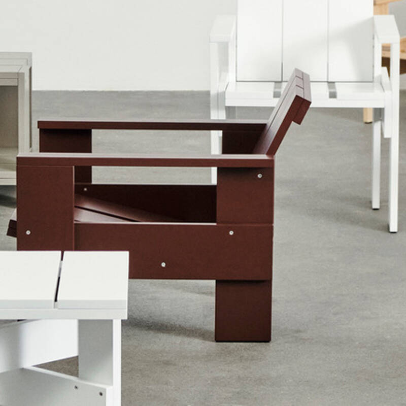 Conçue par Gerrit Rietveld en 1934, la collection Crate a été relancée dans le cadre d'une collaboration entre Rietveld Originals et Hay. Cette série de meubles épurés avait été dessinée à l'origine pour utiliser des surplus de caisses de transport en bois. Réédité dans le respect du design original, le fauteuil Crate est doté des mêmes proportions parfaitement équilibrées et de la même construction évidente pour minimiser les coûts de production et optimiser le processus d'assemblage. La simplicité et la conception spatiale du fauteuil Crate reflètent le style architectural du designer, offrant fonctionnalité et confort sans encombrer l'espace. Editée par Hay, la collection Crate est réalisée en pin massif traité avec une laque à base d’eau et convient à une grande variété d'espaces extérieurs.