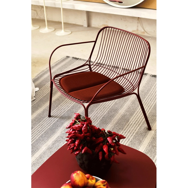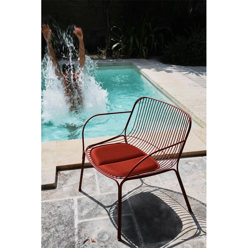 Légère et graphique, Hiray est une collection de meubles pour l’extérieur, dessinée par Ludovica et Roberto Palomba pour la marque italienne Kartell. La collection très complète, comprenant des chaises, fauteuils canapés et tables, se caractérise par son travail du metal avec la technique du fil soudé. Le résultat est un motif essentiel et épuré, également imprégné d’émotion. Conçues pour resister à l’extérieur, les pièces de la collection Hiray Kartell se déclinent en plusieurs couleurs, qui se marient très bien ensemble. Pour les assises, des cousins adaptés sont également disponibles.