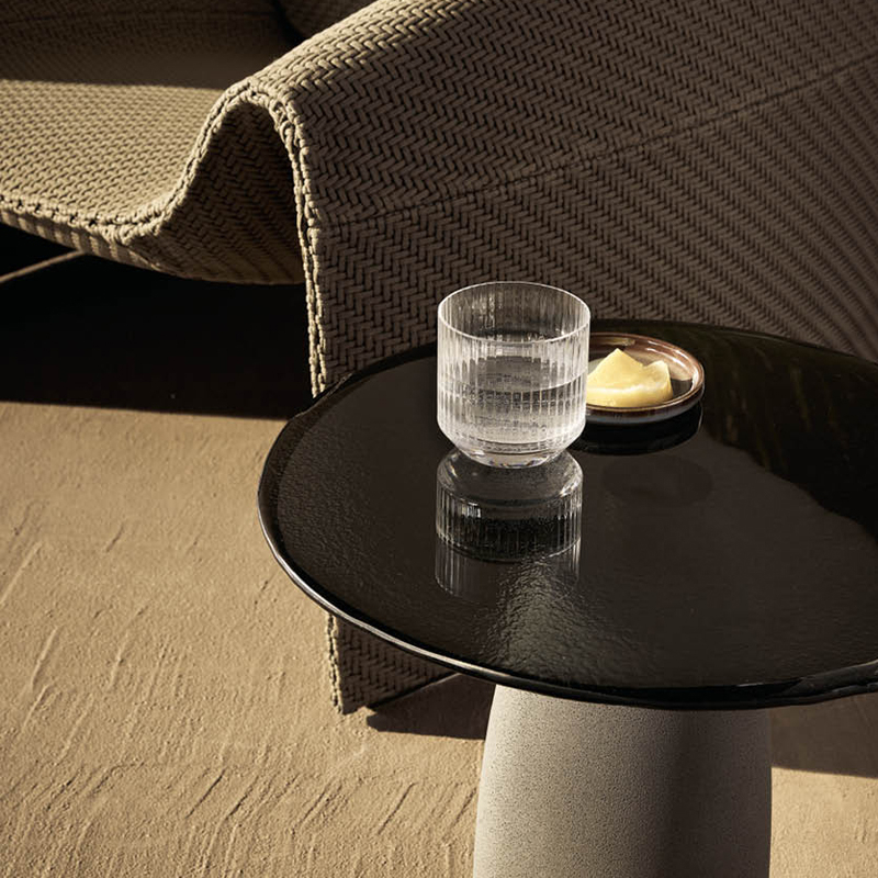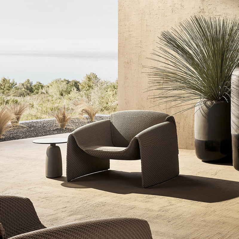 L’emblématique fauteuil Le Club de Poliform, en version outdoor. Les lignes restent inchangées, courbes et douces, de même que le très haut niveau de confort, tandis que le matériau du revêtement évolue ; un tissu en maille traité avec un liquide hydrofuge qui le rend idéal pour une utilisation en plein air. La qualité d’exécution, toujours excellente, exige pour le revêtement une technique complexe et recherchée.