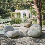 La célèbre collection avant-gardiste de Pierre Paulin repousse encore les limites et sort de la maison. La douceur sculpturale de la collection Pacha, inspirée par les nuages, se distingue par sa forme originale et son haut niveau de confort pour une relaxation optimale. Désormais, toutes ces qualités sont disponibles dans une version adaptée à l’extérieur. Les premières esquisses de Pierre Paulin pour la collection Pacha étaient des dessins très simples qui ressemblaient à des nuages. Ces formes sont devenues les bases du fauteuil Pacha, définissant un nouvel esprit de l’époque. Lorsqu’il a été lancé en 1975, le fauteuil Pacha introduisait une nouvelle façon de se relaxer, plus proche du sol. Conçu pour durer, Pacha Outdoor est doté d’une membrane intermédiaire, développée spécialement par Gubi pour la collection. Celle-ci est à la fois imperméable et respirante, assurant un séchage rapide après une exposition à la pluie, tout en maintenant le confort de l’icône d’origine. La base pivotante est réalisée en contreplaqué résistant à l’humidité et inclut un mécanisme de rotation en acier inoxydable.  Editée par Gubi, la collection Pacha Outdoor comprend un fauteuil pivotant avec ou sans accoudoirs, un pouf et des canapés de différentes tailles. Tous ces modèles peuvent être associés pour créer une zone de relaxation à l’extérieur adaptée à votre espace.