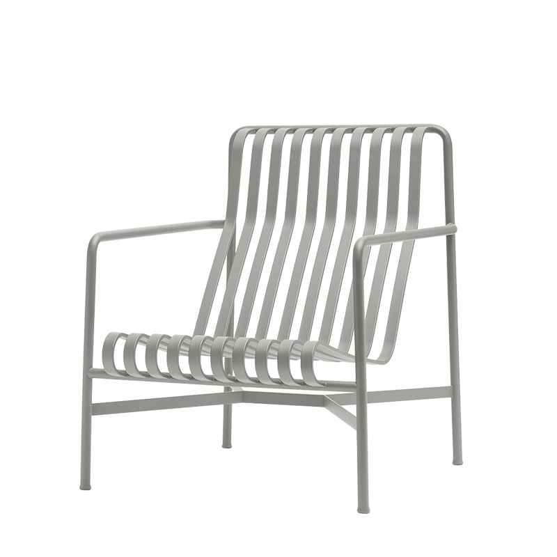 Fauteuil extérieur PALISSADE LOUNGE dossier haut Gris clair HAY