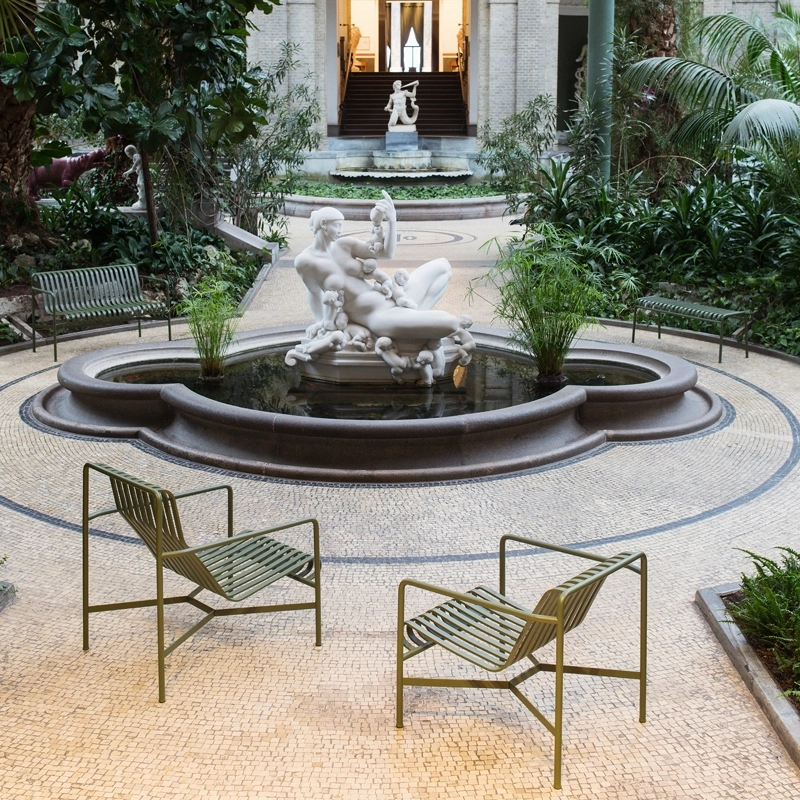 Palissade est une collection de mobilier d'extérieur dessinée par Ronan et Erwan Bouroullec pour la marque Hay. La série est composée d'une large gamme de mobilier, dans laquelle toutes les pièces partagent le même principe de conception. Elle comprend des chaises, petits fauteuils, fauteuils lounge, tabourets, tables et bancs. Spécialement conçues pour un usage extérieur, ces pièces sont visuellement légères mais robustes dans leur réalisation. Inspirée par des meubles classiques, la collection trouve son originalité dans les détails. Bien que conçus en acier, ces meubles outdoor sont confortables simplement grâce à leur design. Chaque pièce est disponible en vert olive, gris clair ou anthracite et s'intègre très bien dans un environnement naturel ou urbain. Avec Palissade, les frères Bouroullec ont imaginé une collection de mobilier outdoor durable qui s'associe facilement à tous les styles : un futur Classique du design !