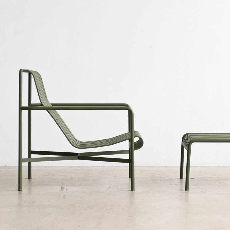 Palissade est une collection de mobilier d'extérieur dessinée par Ronan et Erwan Bouroullec pour la marque Hay. La série est composée d'une large gamme de mobilier, dans laquelle toutes les pièces partagent le même principe de conception. Elle comprend des chaises, petits fauteuils, fauteuils lounge, tabourets, tables et bancs. Spécialement conçues pour un usage extérieur, ces pièces sont visuellement légères mais robustes dans leur réalisation. Inspirée par des meubles classiques, la collection trouve son originalité dans les détails. Bien que conçus en acier, ces meubles outdoor sont confortables simplement grâce à leur design. Chaque pièce est disponible en vert olive, gris clair ou anthracite et s'intègre très bien dans un environnement naturel ou urbain. Avec Palissade, les frères Bouroullec ont imaginé une collection de mobilier outdoor durable qui s'associe facilement à tous les styles : un futur Classique du design !