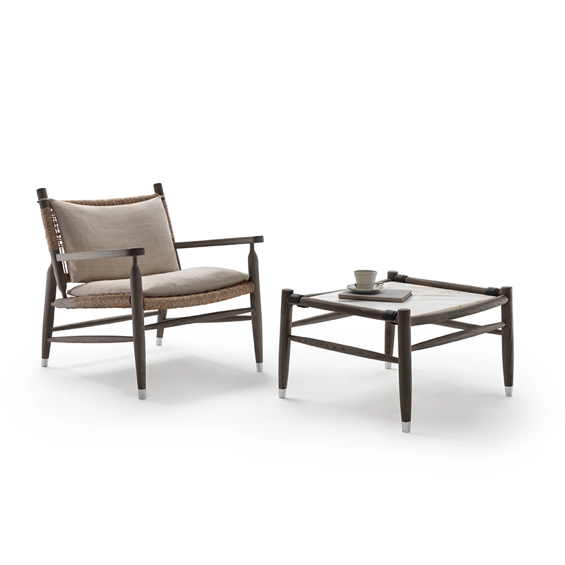 Chaque détail de construction du fauteuil Tessa révèle la grande complexité qui se cache derrière une apparente simplicité ; cette dernière n'est en revanche que le résultat de l'ingéniosité et du travail manuel, inhérent au concept du produit. La structure est entièrement réalisée en frêne massif ou en noyer canaletto tourné et les assemblages sont réalisés selon la tradition ; ce processus de fabrication nécessite un grand savoir-faire et exprime pleinement la matérialité poétique de ce matériau chaleureux et noble qu'est le bois. Le tressage léger et robuste de l'assise et du dossier est fait main en paille des marais, un art ancien qui remonte à la tradition rurale italienne. Des coussins moelleux en option fixés au moyen de rubans minimalistes font de Tessa un fauteuil encore plus accueillant. Editée par Flexform, la famille Tessa comprend un fauteuil avec accoudoirs, un pouf, un banc et une petite table dont le plateau en marbre est disponible en une variété de finitions.
