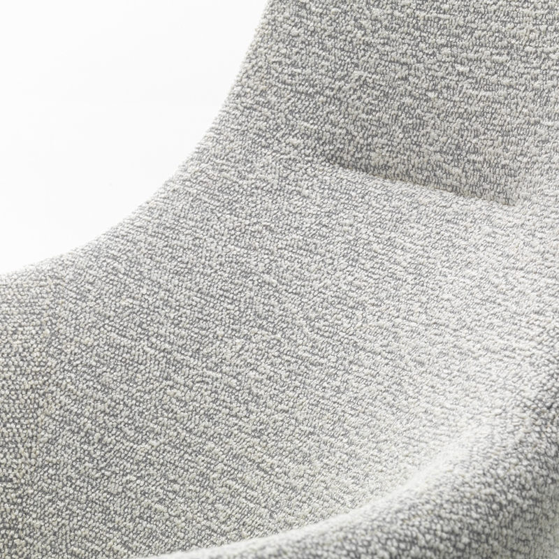 coque plastique renforcé de fibres de verre, plastique abs post-industriel recyclé, mousse polyuréthane moulée, pieds chêne naturel, aluminium finition époxy dim grey