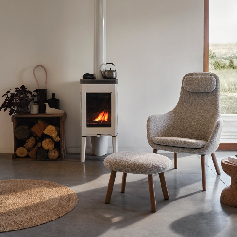 Réinterprétation du fauteuil rembourré à quatre pieds et à dossier haut, HAL Lounge Vitra est un fauteuil au design compact et remarquablement confortable. L’esthétique sobre et intemporelle donnée au fauteuil HAL Lounge, signature de Jasper Morrison, permet à ce fauteuil d’être placé seul, à deux ou en groupe dans une diversité d’espaces privés. Malgré ses dimensions compactes, le fauteuil Hal Lounge est exceptionnellement confortable. Il est doté d'un coussin d'assise et d'un appuie-tête souple et amovible. La durée de vie du fauteuil Hal Lounge Vitra est renforcée par la possibilité de retirer complètement ses revêtements ainsi que ceux du HAL Ottoman, pour les nettoyer ou les remplacer.