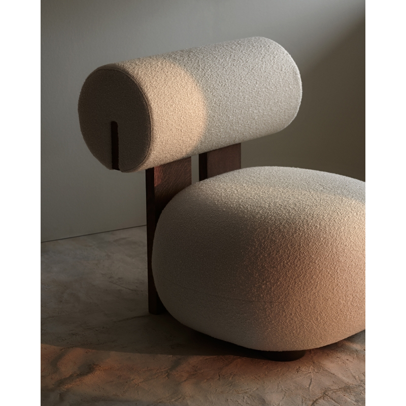 Caractérisé par des formes douces et ludiques, le fauteuil Hippo de Norr11 s'impose élégamment dans n'importe quel intérieur. Le fauteuil Hippo repose sur deux pieds robustes et un profil en bois reliant le siège et le dossier qui contraste avec les formes douces du fauteuil. Le profil caractéristique des pieds en bois est disponible en différentes finitions de chêne et s'associe à un tissu bouclé de grande qualité.