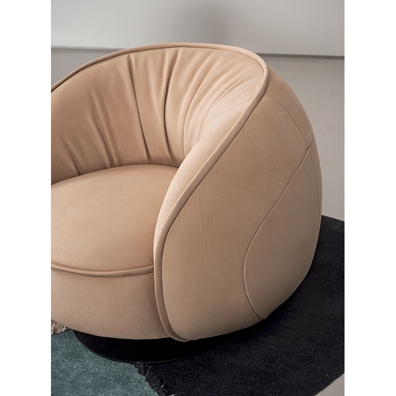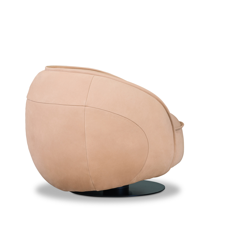 Baxter a travaillé sur le confort avec des formes douces et rassurantes. Le fauteuil