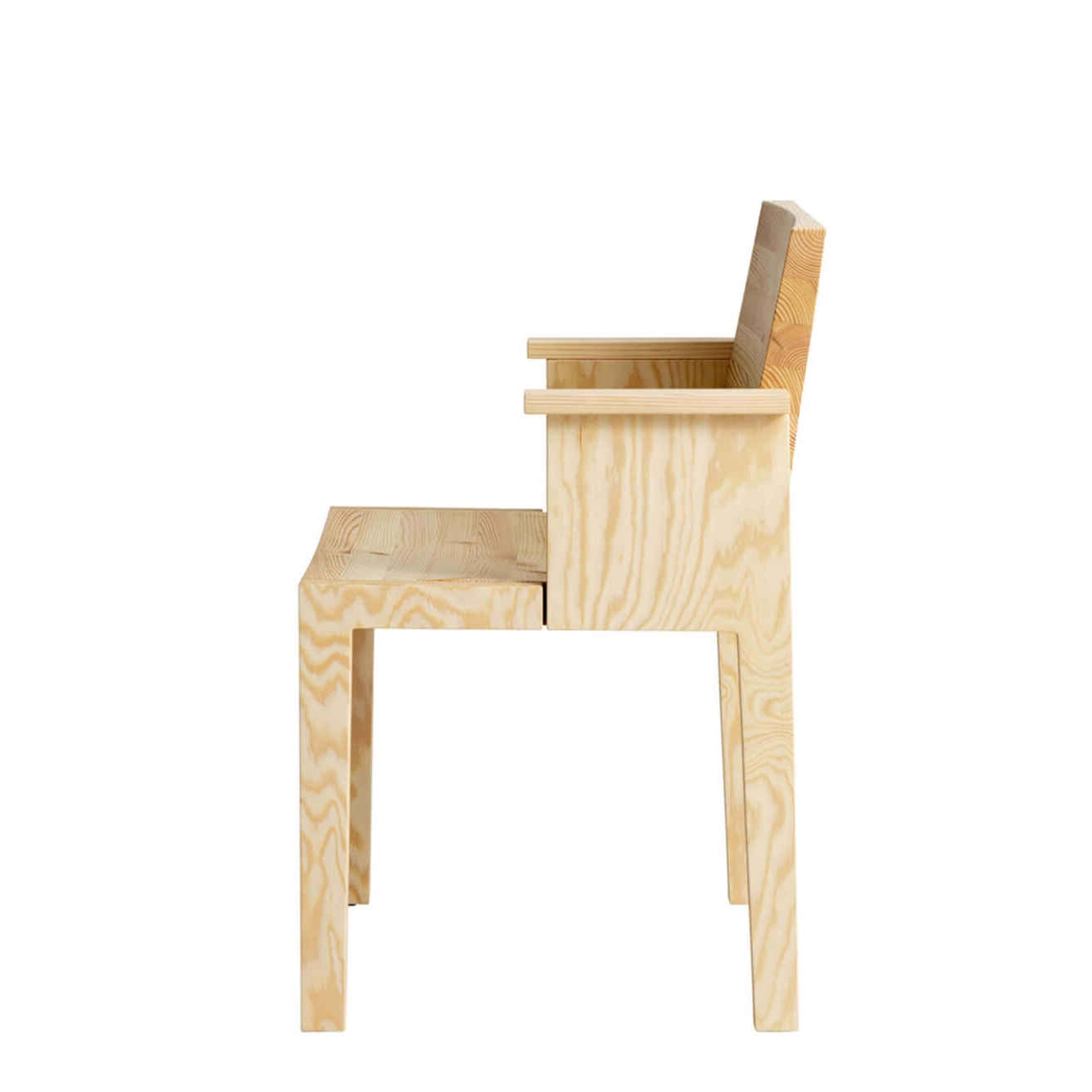 Le fauteuil Maasto, imaginé par Ronan Bouroullec pour Vaarnii, célèbre la beauté brute et l’authenticité du pin finlandais. Avec ses lignes sobres et son design sans compromis, il s’impose comme une pièce à la fois fonctionnelle et sculpturale, pensée pour un usage quotidien aussi bien à la maison que dans des lieux publics. Sa silhouette équilibrée associe des flancs en contreplaqué au veinage expressif, soigneusement travaillé pour allier robustesse, légèreté et simplicité de fabrication. L’assise et le dossier en bois massif garantissent à Maasto solidité et confort dans le temps. Ce fauteuil se distingue par son esthétique « hyper-pine », signature de Vaarnii, qui met en valeur les textures naturelles du bois dans une approche volontairement directe. Doté d'accoudoirs en contreplaqué, le fauteuil Maasto offre une ergonomie renforcée et une expérience d’assise confortable, tout en conservant une apparence épurée.