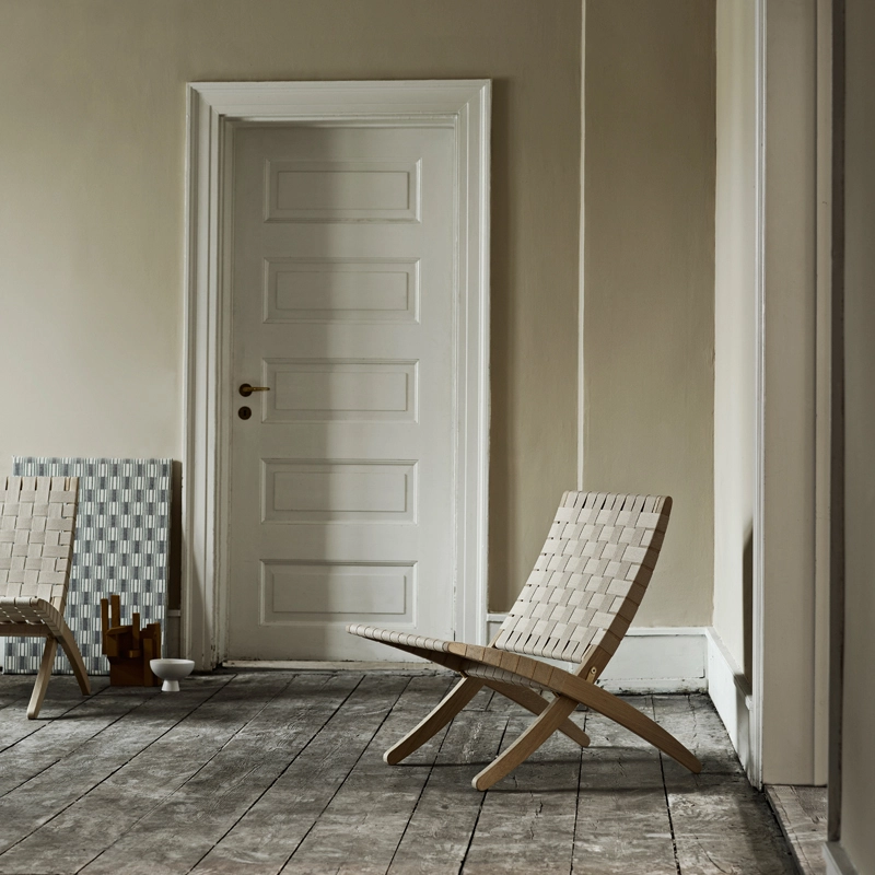 Dessiné en 1997 par Morten Gøttler, le fauteuil Cuba est un bon exemple de l’héritage du design scandinave et de l’équilibre entre clarté des formes et fonction. Edité par Carl Hansen, le fauteuil Cuba est devenu un véritable classique du design en seulement deux décennies. Il est doté d’une base pliante en chêne massif, sur laquelle sont tressées des sangles en coton qui forment l’assise et le dossier. Cette technique apporte à la fois confort et soutien, car les sangles s’adaptent aux contours du corps. Ce fauteuil lounge est idéal aussi bien en siège supplémentaire qu’installé de façon permanente dans le salon. Le fauteuil Cuba est léger et pliable, ce qui permet de le transporter et de le ranger facilement. En plus de son aspect fonctionnel, il a toute l’élégance d’une sculpture avec ses matériau naturels et son savoir-faire évident.