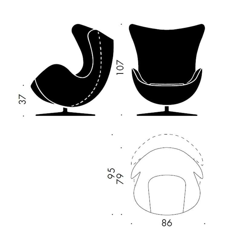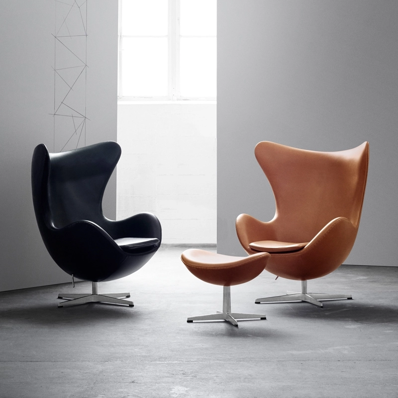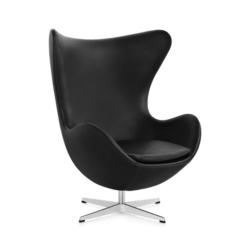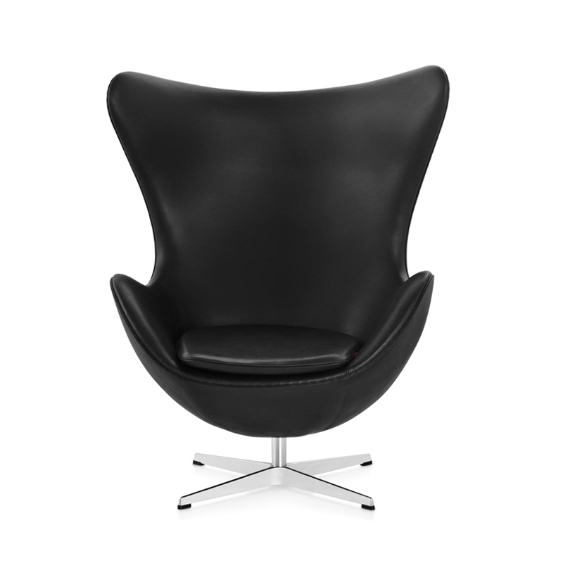 Arne Jacobsen dessina le fauteuil Oeuf en 1958, pour le hall et les espaces d'accueil du Royal Hotel à Copenhague. La conception du fauteuil Oeuf s'inscrivit dans le cadre d'un projet qui intégrait l'architecture et le design du mobilier. En ce sens le fauteuil Egg représente le triomphe du design global de Jacobsen. Réalisée grâce à une technique innovante à l'époque par Fritz Hansen, la coque en mousse présente une forme très caractéristique qui permet de préserver un peu d'intimité dans les espaces publics. Icône du design il est aujourd'hui parfaitement adapté à nos intérieurs contemporains. La coque est disponible avec un revêtement de cuir ou de tissu de différentes couleurs, toujours associée à une base en aluminium poli.