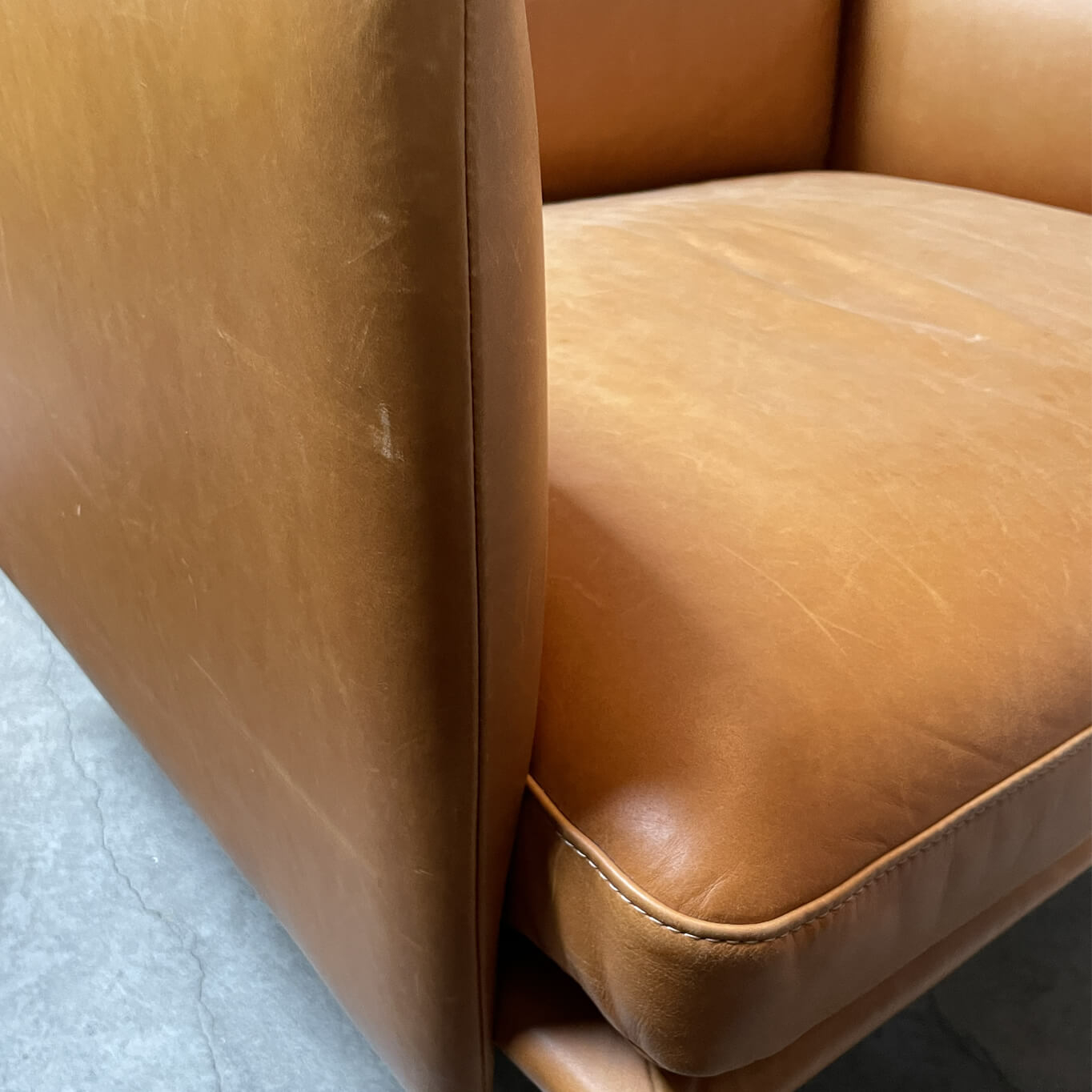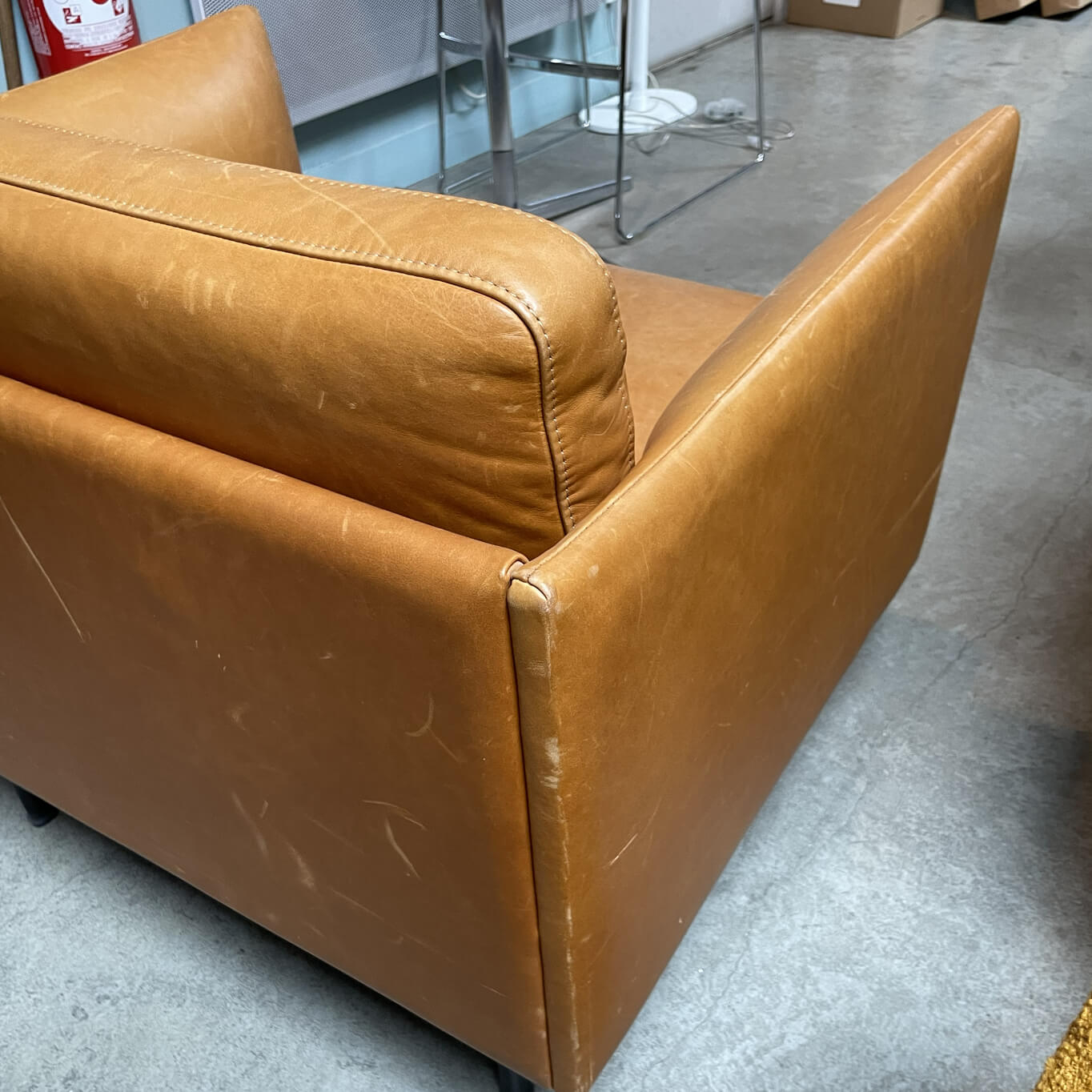 Présenté par Muuto, Outline est un fauteuil d'occasion aux proportions généreuses, contrastant avec une apparence délicate et sophistiquée. Sa structure fine, ses accoudoirs et ses minces coussins de dossier maximisent l’espace disponible tout en offrant un confort optimal. Les pieds discrets sont nichés sous la structure, renforçant l’allure légère du fauteuil. En tant que pièce d'occasion, le fauteuil Outline présente quelques traces d’usure, qui ajoutent du caractère à son histoire. Pour Outline, le studio Anderssen & Voll n’a fait aucun compromis visuel ou fonctionnel. Le résultat est un siège accueillant, moderne et polyvalent, avec un côté intemporel. Grâce à son charme discret, le fauteuil Outline de Muuto s’intègre parfaitement dans tous les intérieurs, que ce soit au milieu du salon ou contre un mur.