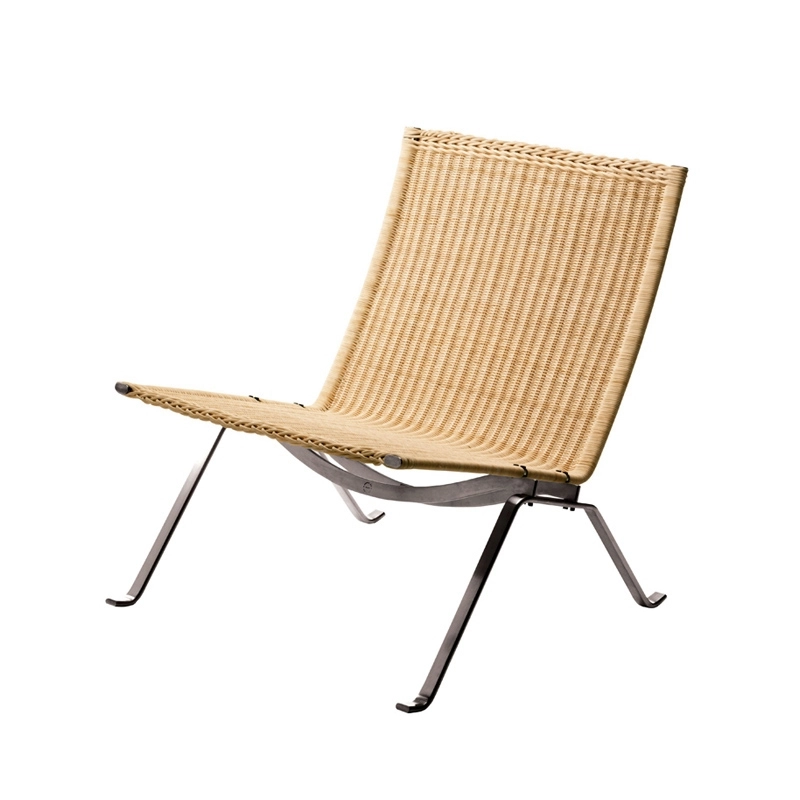 La discrète et élégante chauffeuse PK22 incarne à la perfection le travail de Poul Kjaerholm et sa recherche alliant la forme idéale à la dimension industrielle. Cette chauffeuse dessinée en 1956 et produite par Fritz hansen, est aujourd'hui un classique du design. La structure en acier inoxydable trouve son origine dans son projet de diplôme, la chaise « Element » obtenu à l'école d'arts appliqués de Copenhague. La PK22 est disponible en cuir noir ou marron foncé, ou en cannage, avec une structure en inox satiné.