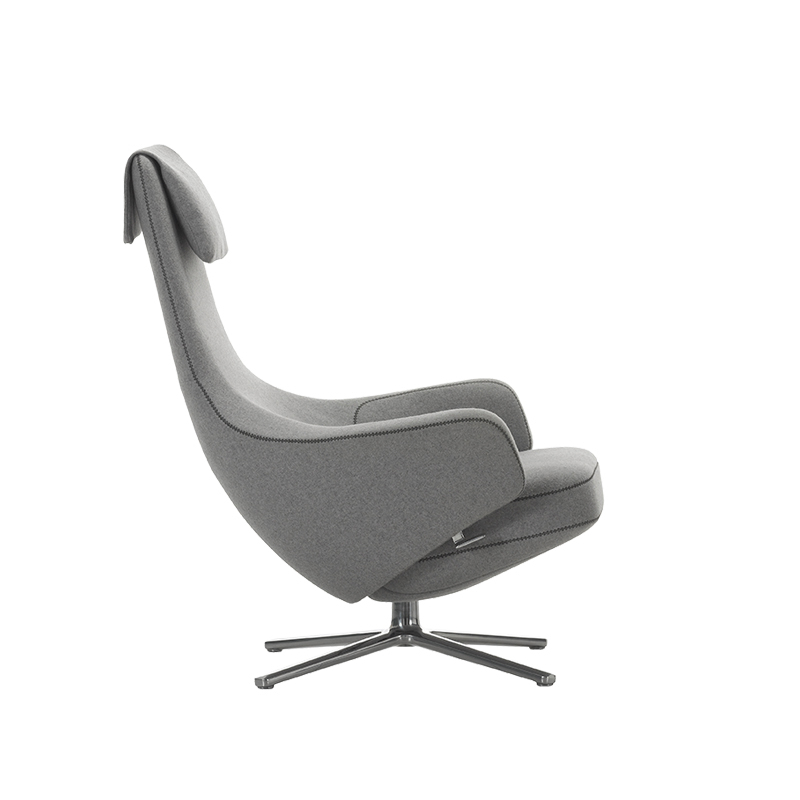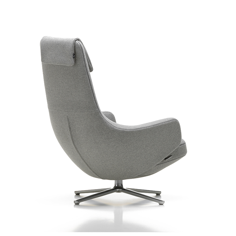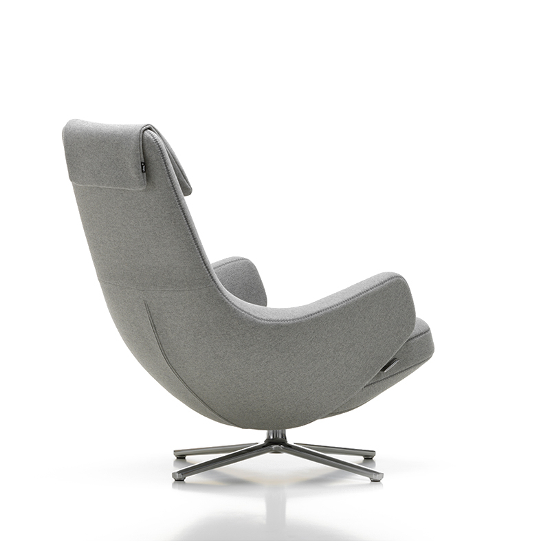fauteuil Repos marie le savoir-faire de la technologie des sièges de bureau au confort moelleux d'un fauteuil lounge. Le dossier et l'assise rembourrés du grand fauteuil pivotant satisfont au besoin de mouvement et invitent à des positions assises variées. Grâce à sa construction biomécanique, le