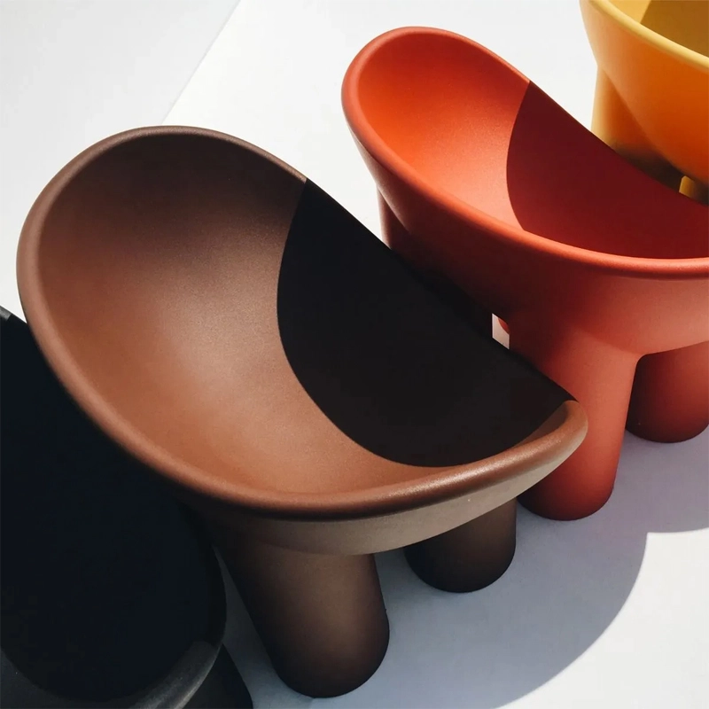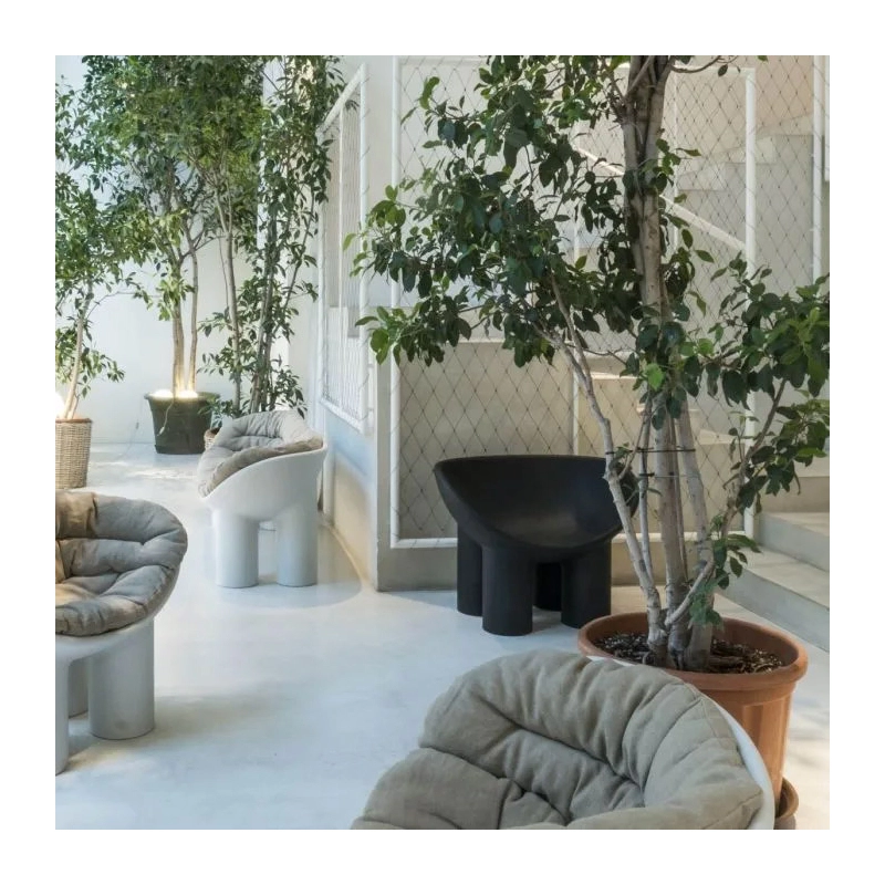 Le fauteuil Roly Poly a été conçu par Faye Toogood pour la marque Driade. Figure incontournable du design contemporain, Faye Toogood est une artiste avant-gardiste qui vit et travaille à Londres. Le fauteuil Roly Poly incarne une rencontre entre la sculpture et le mobilier, représentant ainsi parfaitement la philosophie de la marque Driade. La designer travaille autour de formes simples et massives en s'inspirant de l'art brut et du primitivisme. Les rondeurs rassurantes de ce fauteuil Roly Poly oversize servent un design au style naïf presque enfantin. Les formes courbes et douces établissent une rupture avec les environnements très stricts et linéaires qui composent notre quotidien. Cette création dégage une énergie positive. En effet, son assise en forme de cuvette lui confère un aspect rassurant et accueillant. Fabriqué en polyéthylène moulé par rotation, le fauteuil Roly Poly de chez Driade peut accueillir en plus un coussin moelleux pour un confort exceptionnel. Le fauteuil Roly Poly se décline dans une variété de couleurs pour compléter tout type de décoration qu'elle soit intérieure ou extérieure.