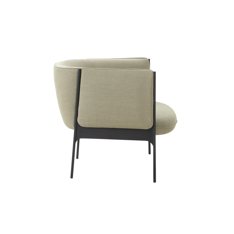 revêtement tissu, rembourrage mousse et fibres, pieds acier finition époxy noir