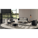 Minotti. La courbe douce de la coque, qui dessine l'accoudoir tout en logeant le coussin du dossier, confère à l'objet sa ligne pure et enveloppante. Personnalisable dans une large gamme de revêtements en cuir et en tissu,
