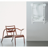Le fauteuil Thinking Man's Chair est aujourd'hui l'un des modèles les plus célèbres de Jasper Morrison. A l'origine créé pour une foire au Japon en 1986, le fauteuil est édité depuis par Cappellini. La structure est en tube de métal, l'assise et le dossier en profilé plat. Très pratiques, les accoudoirs sont équipés de petits plateaux. Conçu aussi bien pour l'intérieur que pour l'extérieur, ce fauteuil illustre les premières approches de travail du designer qui est devenu un classique incontesté aujourd'hui. Avec des lignes simples et discrètes au départ, le fauteuil Thinking Man's Chair semble s'allonger par l'effet des deux courbes situées à l'arrière qui se déploient jusqu'aux accoudoirs incurvés pour donner un style très graphique et particulièrement élégant. Thinking Man's Chair est un fauteuil que l'on a envie d'exposer telle une sculpture, que ce soit dans un jardin ou dans le salon. Vu de profil, vous ne pourrez vous empêcher de contempler le travail subtil du designer qui présente là une pièce d'une beauté parfaite. Dans cette version, les inscriptions accentuent davantage les formes courbes du fauteuil.