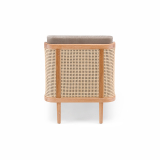 noyer danois huilé, coussins assise et dossier tissu, dos cannage rotin