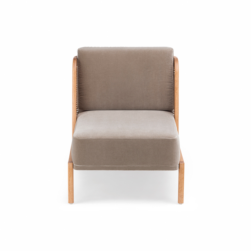 Le fauteuil Throne Lounge Chair de De La Espada marie tradition et modernité, rappelant les influences Art Déco d'Autoban. Throne Lounge fait partie d'une famille de meubles qui comprend une chaise de salle à manger, un tabouret de bar et un canapé, disponible avec un dossier en rotin ou rembourré.