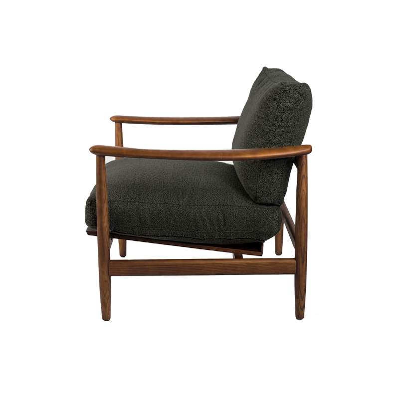structure en frêne 100% certifié fsc, rembourrage mousse, revêtement tissu
