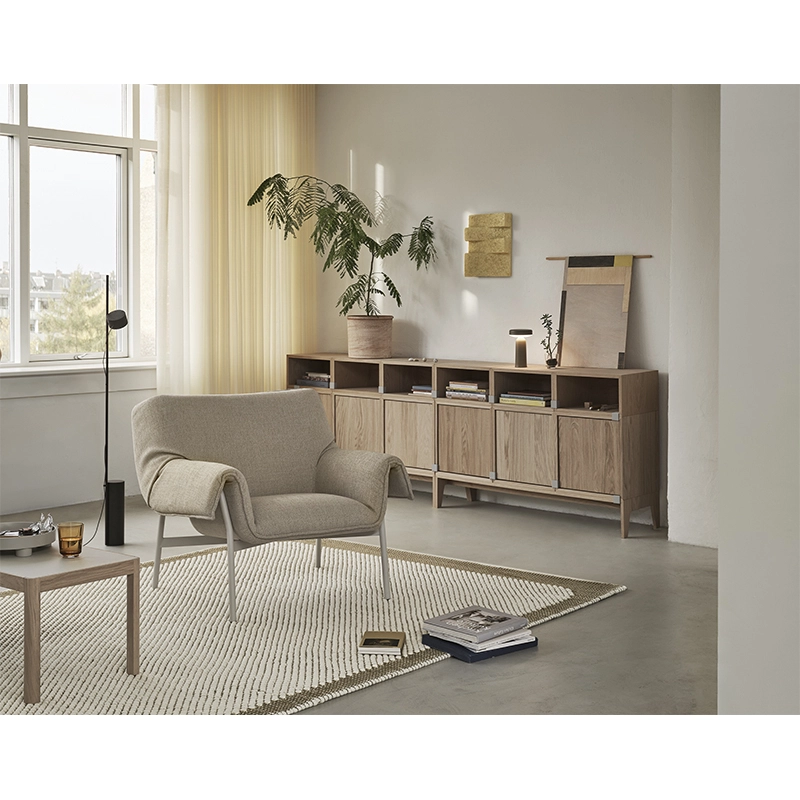 Le fauteuil Wrap de Muuto est constitué d'une coque enveloppée d'un textile semblable à une couverture, procurant un véritable sentiment de confort tout en gardant un caractère fort. La conception du fauteuil Wrap est guidée par la recherche du confort ultime. Sa forme généreuse est soutenue par un cadre en acier léger créant une image contrastée de légèreté aérienne. Le rembourrage drapé est le résultat d'une recherche et d'un développement approfondis associé à un savoir-faire artisanal. Edité par la maison danoise Muuto, le fauteuil Wrap Lounge Chair est simple mais raffiné, et combine un sentiment de facilité et de confort avec un langage de design fort.
