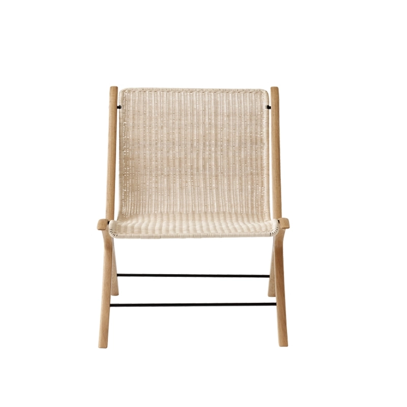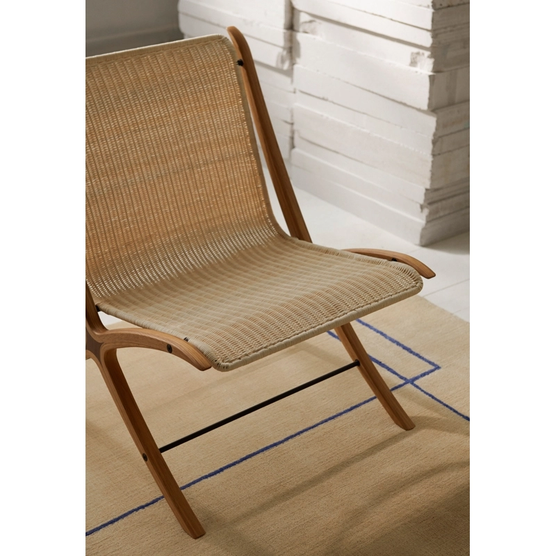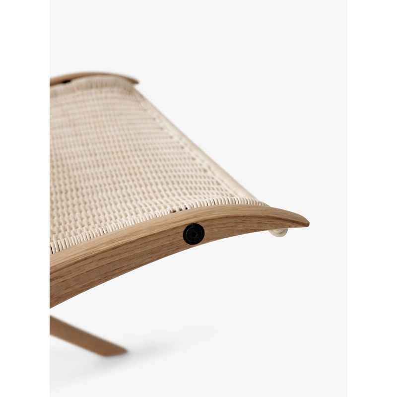 Avec une relation intrigante entre matériau et concept, le fauteuil X HM10 représente l’apogée de Hvidt & Mølgaard en tant que designers. Après avoir expérimenté pendant des années un concept de structure en bois inspiré par les anciennes raquettes de tennis, le duo de designers présentent en 1959, un fauteuil lounge doté d’une silhouette inclinée distinctive et d’une esthétique discrète. Pièce design extrêmement élégante qui consolide leur réputation de pionnier du design danois, le fauteuil X reflète la manière peu orthodoxe dont Hvidt et Mølgaard abordent les principes de construction. Les croquis d’archive montrent comment les designers ont examiné et testé les matériaux pour s’arrêter sur une assise en rotin tressé, soutenue par une structure gracieuse en chêne huilé. Le fauteuil se démarque aussi par son insert en noyer savamment conçu, qui contraste avec le chêne. Avec ses proportions réduites et ses matériaux naturels, le fauteuil X HM10And Tradition trouve sa place dans tous types d’espaces.