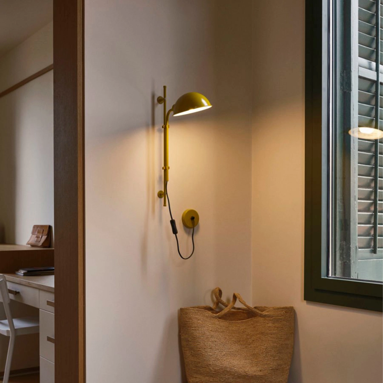Les appliques Funiculí A et Funiculí A Fabric de Marset, conçues par Lluís Porqueras, incarnent la simplicité et la précision du design. Ces lampes murales légères et peu encombrantes permettent de créer à la fois un éclairage direct et une lumière d’ambiance, modulable selon les besoins de chaque espace. La particularité de ces modèles réside dans leur abat-jour libéré, offrant une mobilité maximale et un pivot à 360° pour diriger le faisceau exactement là où il est nécessaire. Le système de double fixation permet d’ajuster facilement la hauteur de l’applique, assurant un confort lumineux optimal. La version Funiculí A Fabric introduit un abat-jour en tissu qui diffuse la lumière avec douceur et chaleur. La collection a évolué avec de nouvelles couleurs intenses – jaune moutarde, terracotta et vert – qui apportent dynamisme et caractère aux espaces. Ces nuances mettent en valeur les formes emblématiques du Funiculí, transformant chaque lampe murale en un véritable objet décoratif tout en conservant son rôle pratique.