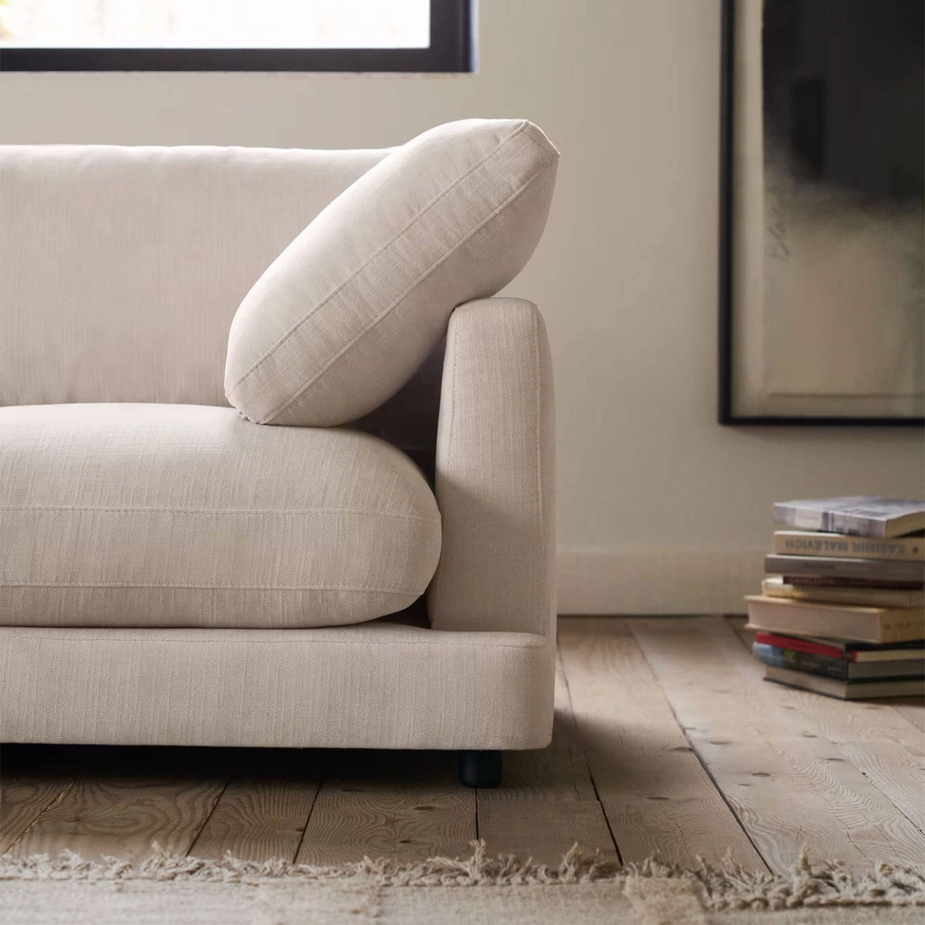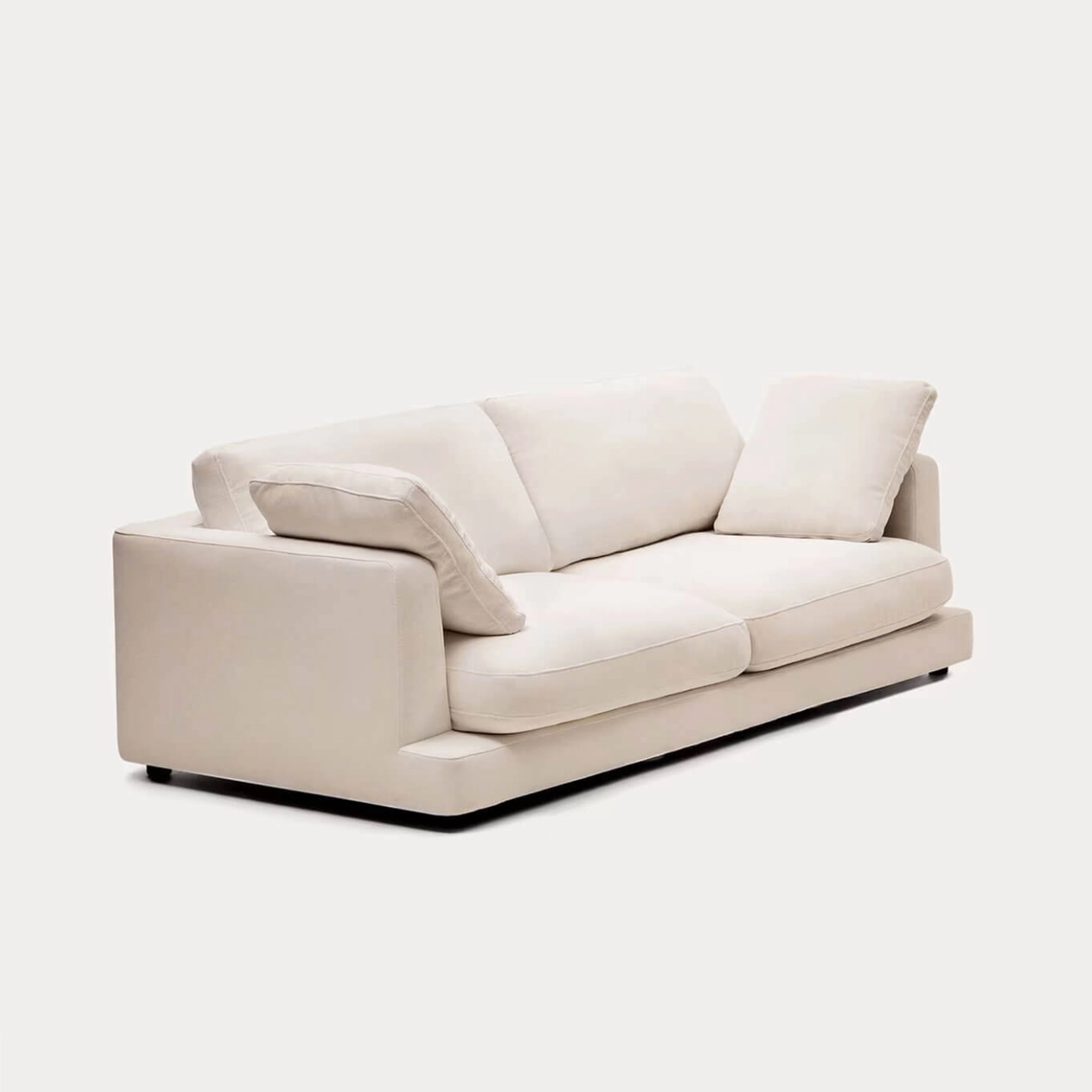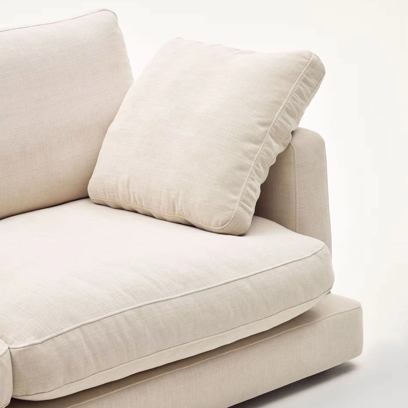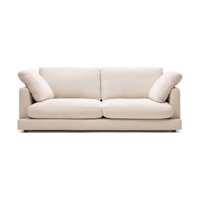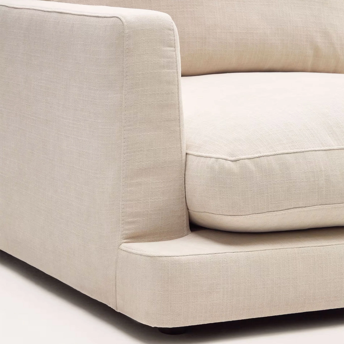 Kave Home incarne l’alliance parfaite entre design élégant, confort et durabilité. Revêtu d’un tissu chenille beige à petite structure de haute qualité, il offre une texture douce et raffinée tout en garantissant une résistance exceptionnelle. Son traitement antibactérien et antitaches permet un entretien facile à l’aide d’un simple chiffon humide. Les coussins d’assise et de dossier, déhoussables et réversibles, sont garnis de fibres vierges 100 % siliconées à effet duvet et d’un noyau en mousse haute densité (30 kg/m³), assurant un confort enveloppant et un soutien durable. Le