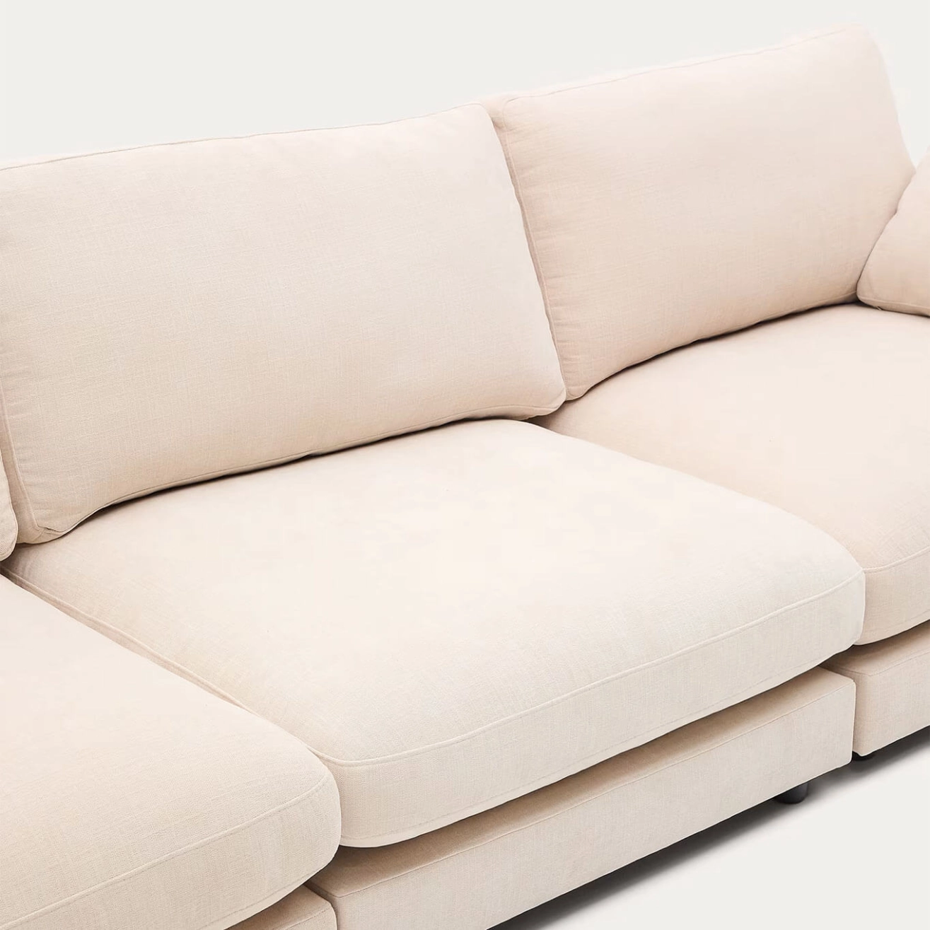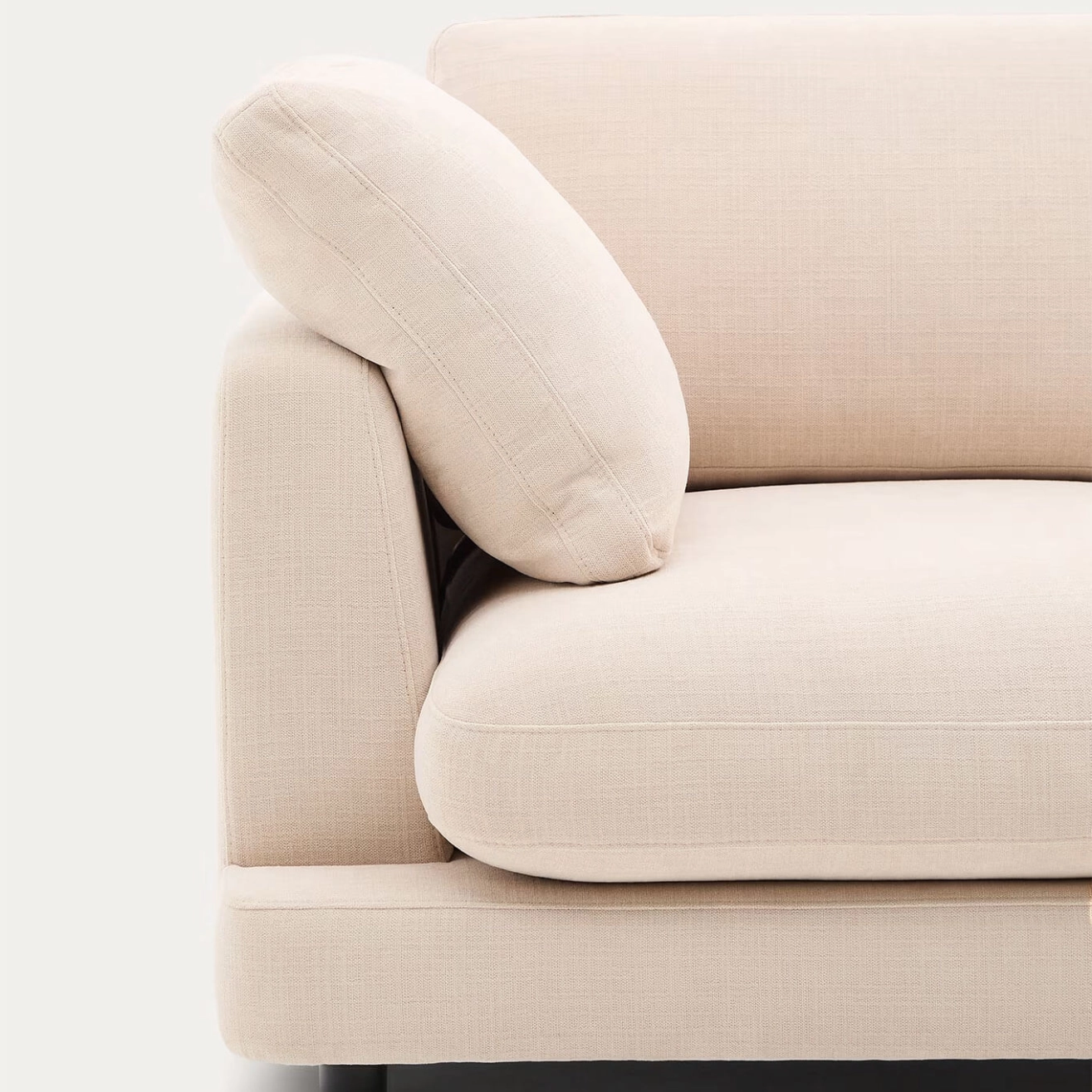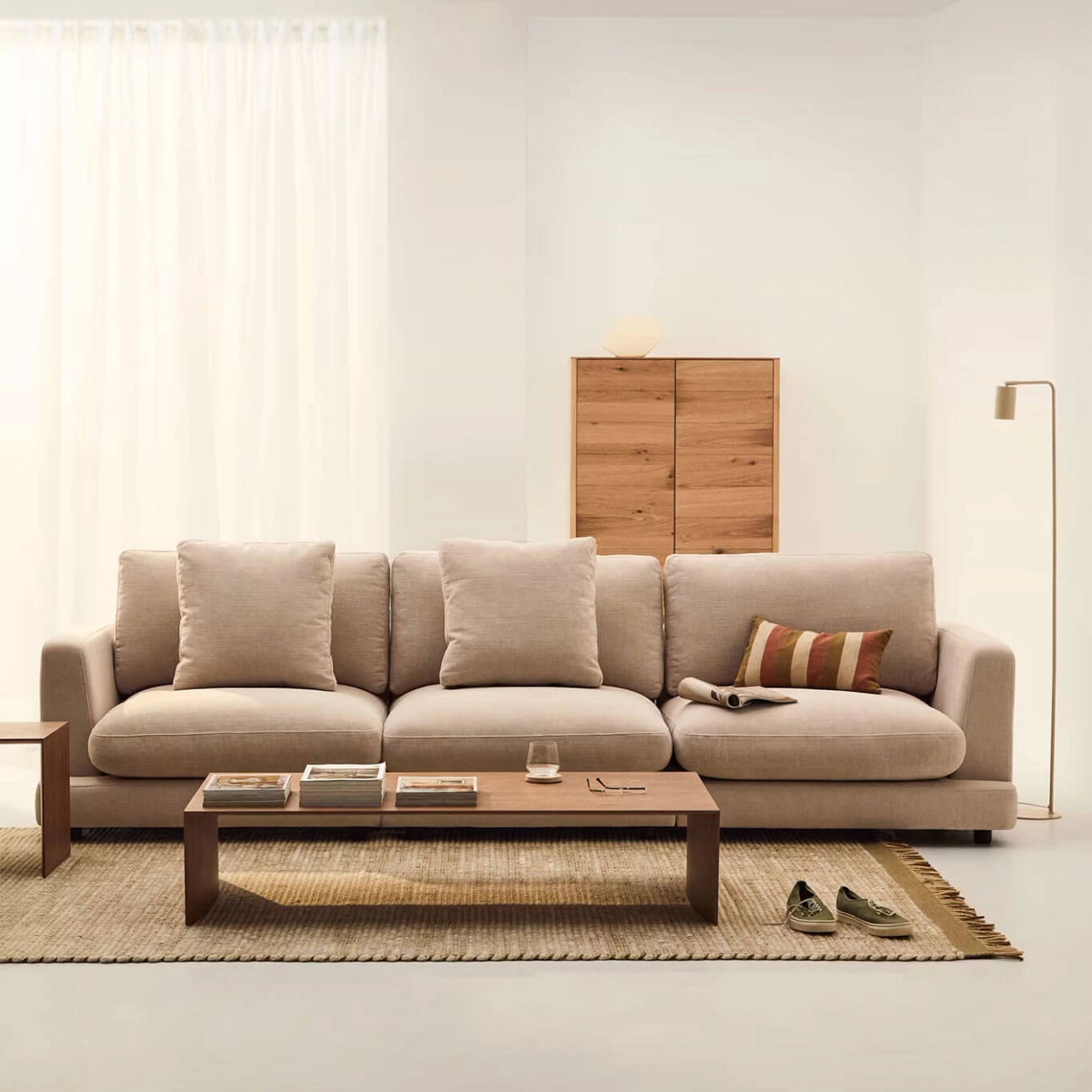 Kave Home en chenille beige allie design, confort et qualité pour transformer votre salon en un espace décontracté et élégant. Faisant partie de la collection Gala, il présente des proportions généreuses et des formes arrondies, créant une atmosphère chaleureuse et accueillante. Son revêtement en tissu chenille de haute qualité, à petite structure, antibactérien et traité antitaches, est à la fois durable et agréable au toucher. Les coussins sont garnis de fibre soft 100 % siliconée avec un noyau en mousse de 30 kg/m³, offrant un confort moelleux et enveloppant. Les assises, dossiers et coussins sont déhoussables et réversibles. Le fournisseur du tissu est certifié