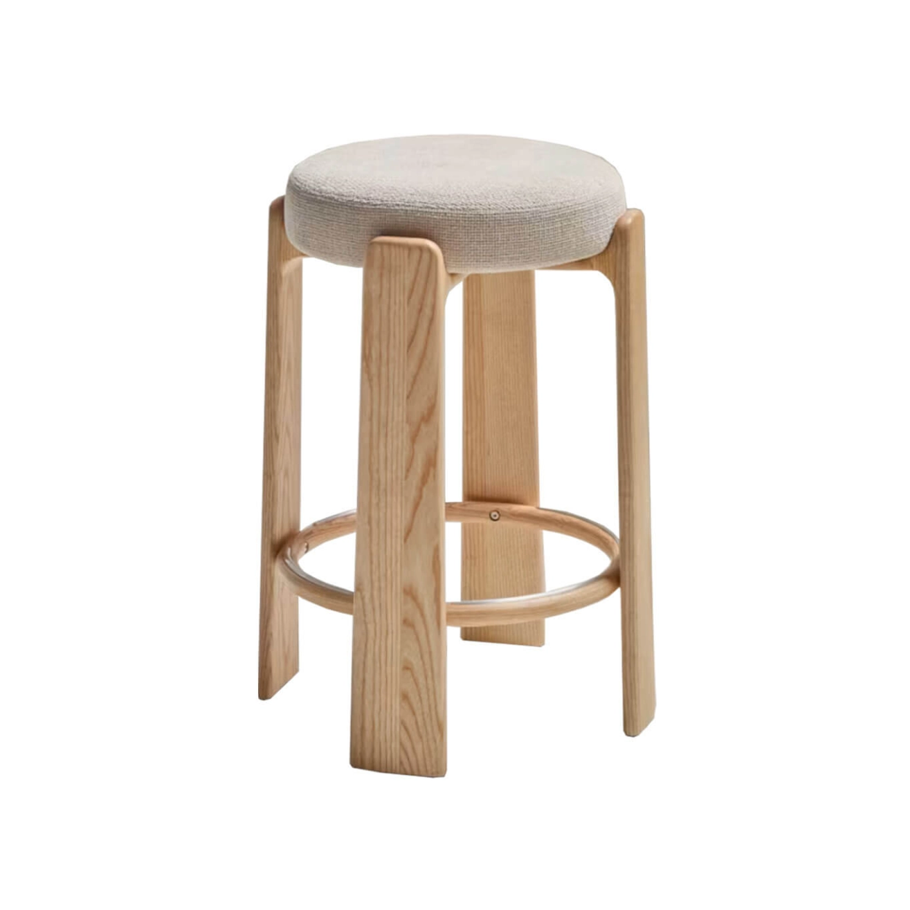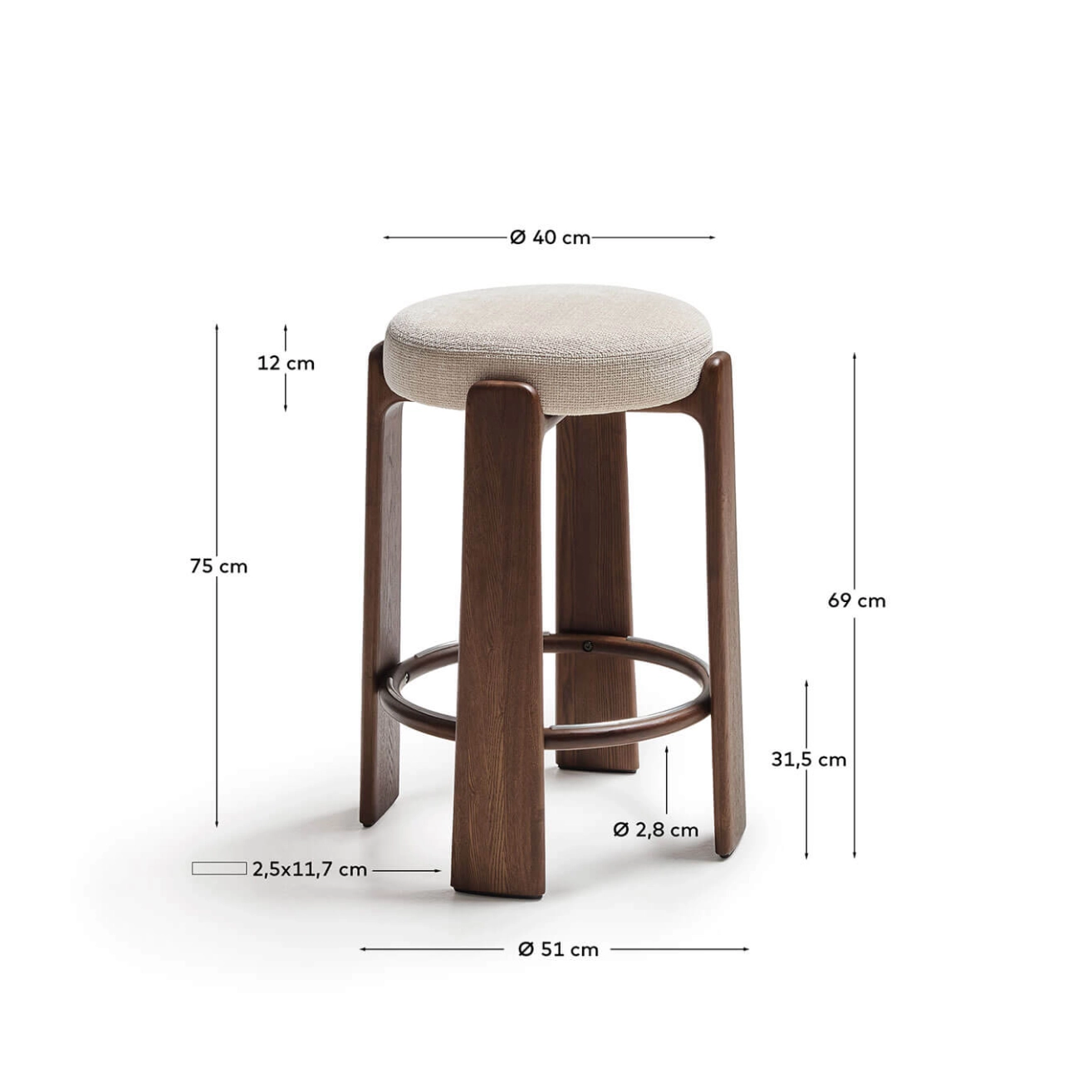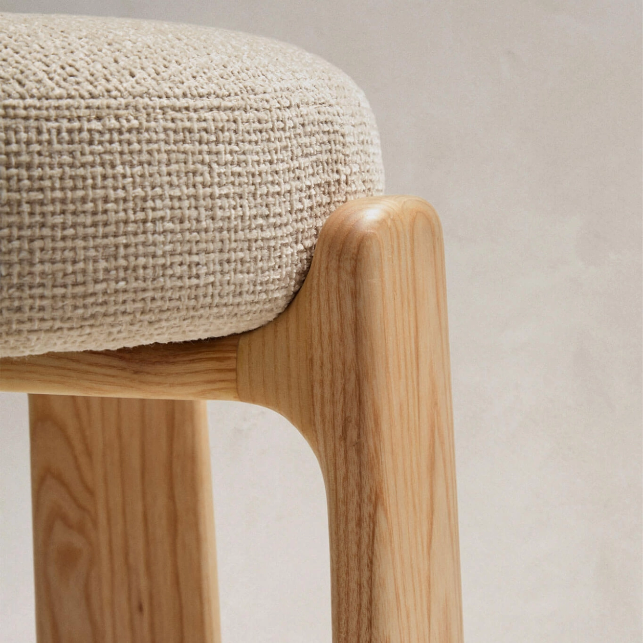 Tabouret haut GRANITE H 75 Tissu Chenille beige / Frêne naturel KAVE HOME