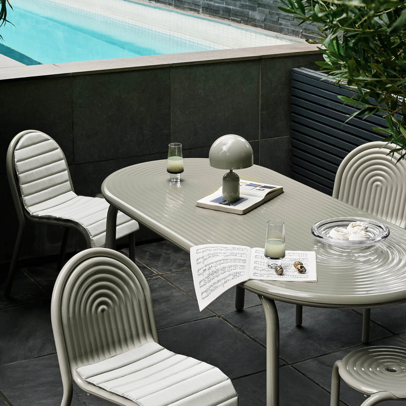 La Table Groove de Tom Dixon est une pièce maîtresse de mobilier, fusionnant élégance moderne et fonctionnalité. Son design distinctif s'inspire de l'Art déco, avec des lignes nettes et des rainures profondes qui apportent une texture visuelle fascinante et une identité forte. Avec sa forme épurée et son esthétique contemporaine, la Table Groove se fond parfaitement dans divers environnements, ajoutant une touche de sophistication à n'importe quelle pièce et extérieur. Elle est disponible en couleur mousse et mastic. Conçue avec des matériaux haut de gamme, la Table Groove se caractérise par sa solidité et sa durabilité, offrant une excellente résistance au fil du temps. Disponible en finition thermolaquée de haute qualité et fabriqué en aluminium, elle s’adapte aisément à des décors variés, qu’il s’agisse de maisons modernes ou de bureaux élégants. Son design pratique offre une large surface idéale pour les repas, les réunions ou simplement pour accueillir vos objets décoratifs. Chaque détail de la Table Groove reflète l’innovation et l’expertise de Tom Dixon, garantissant une expérience à la fois esthétique et fonctionnelle, parfaite pour transformer n’importe quel espace intérieur ou extérieur.