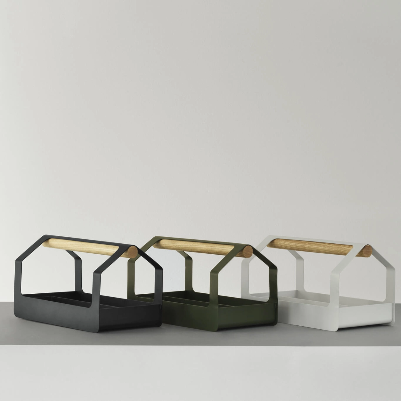 La Haus Toolbox, imaginée par le duo Hannes & Fritz et éditée par Normann Copenhagen, revisite la traditionnelle boîte à outils avec une élégance contemporaine. Alliant robustesse industrielle et esthétique soignée, elle se compose d’une structure ouverte en acier thermolaqué, complétée par une poignée en bois de frêne lisse qui apporte chaleur et contraste. Sans compartiments rigides, Haus offre une grande liberté d’organisation, que ce soit pour ranger des outils, des fournitures de bureau, des accessoires de salle de bain ou des ustensiles de cuisine. Inspirée du design utilitaire classique, la Haus Toolbox de Normann Copenhagen séduit par sa polyvalence, sa simplicité formelle et son adaptabilité à tous les espaces de la maison.
