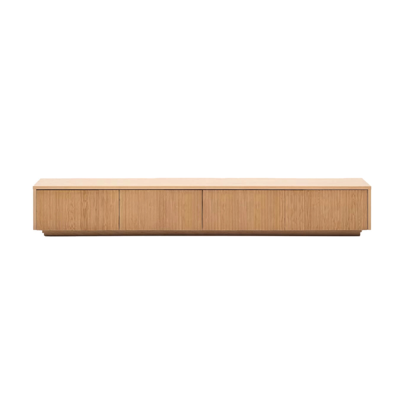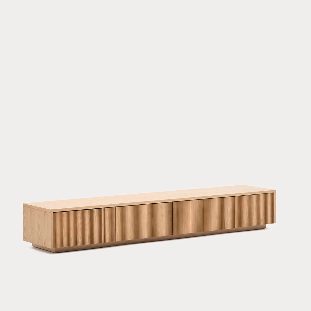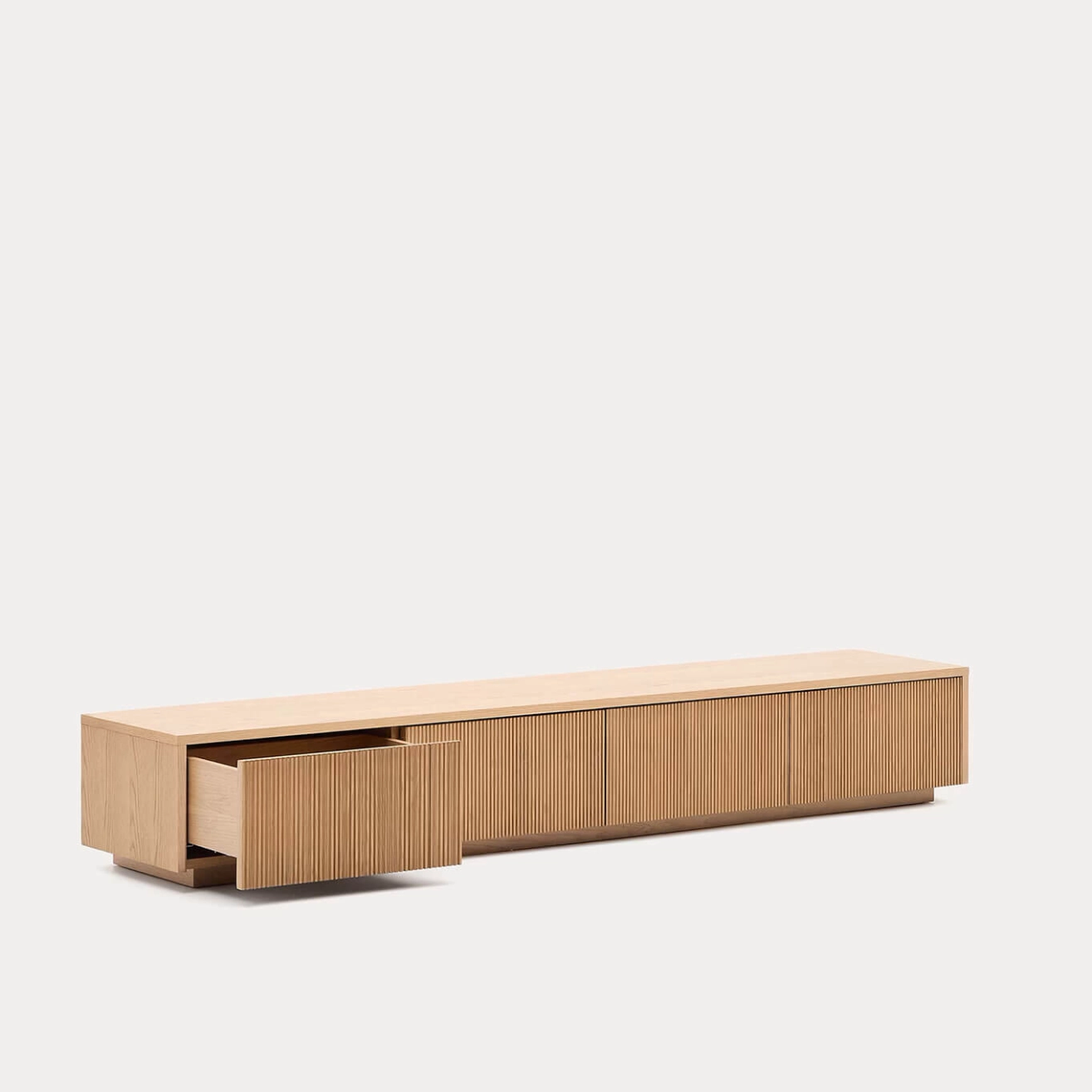 Helvine est un meuble TV en placage de chêne de 200 x 30 cm FSC 100 %, conçu par Kave Home. Cette collection intemporelle s’inspire de la simplicité de la nature : le verre apporte lumière et met en valeur les couleurs et textures de l’intérieur, tandis que le bois apporte chaleur et élégance. Le meuble TV dispose de 4 tiroirs à ouverture à pression avec glissières dissimulées réglables, et d’une base ajustable pour compenser les différences de niveau. Sa structure interne est en bois certifié FSC 100 % provenant de forêts gérées durablement, garantissant qualité et respect de l’environnement. Combinable avec le reste de la collection Helvine, il allie fonctionnalité et esthétique naturelle pour s’intégrer harmonieusement dans tous les espaces.