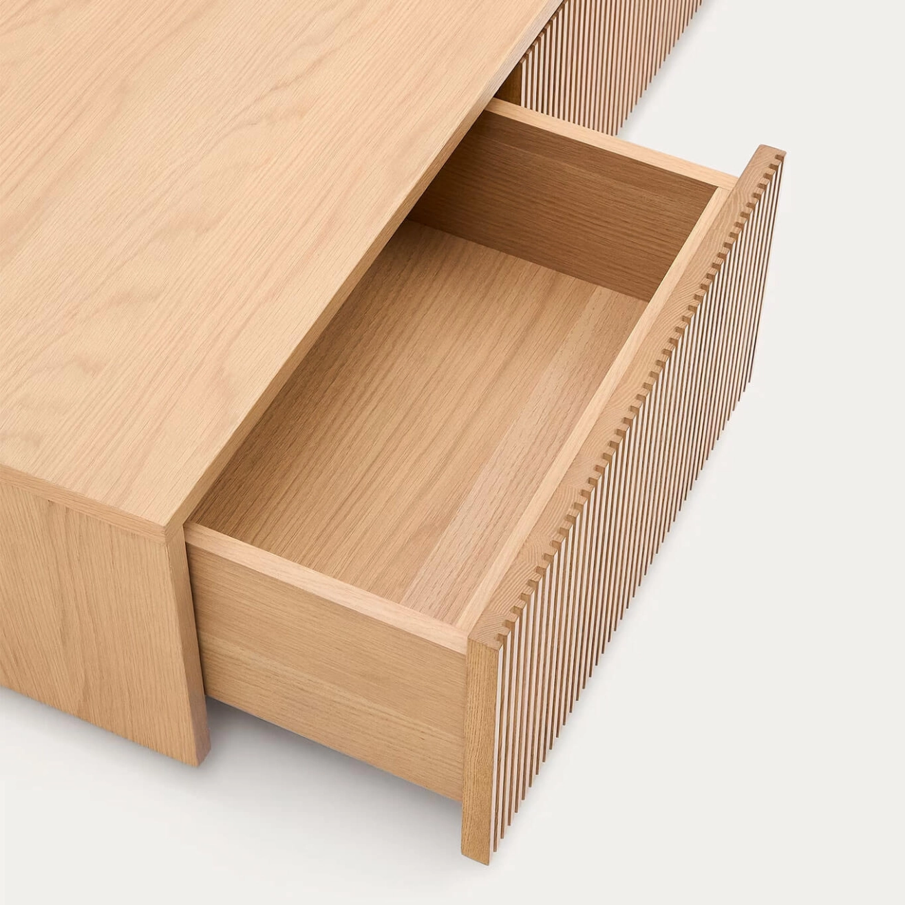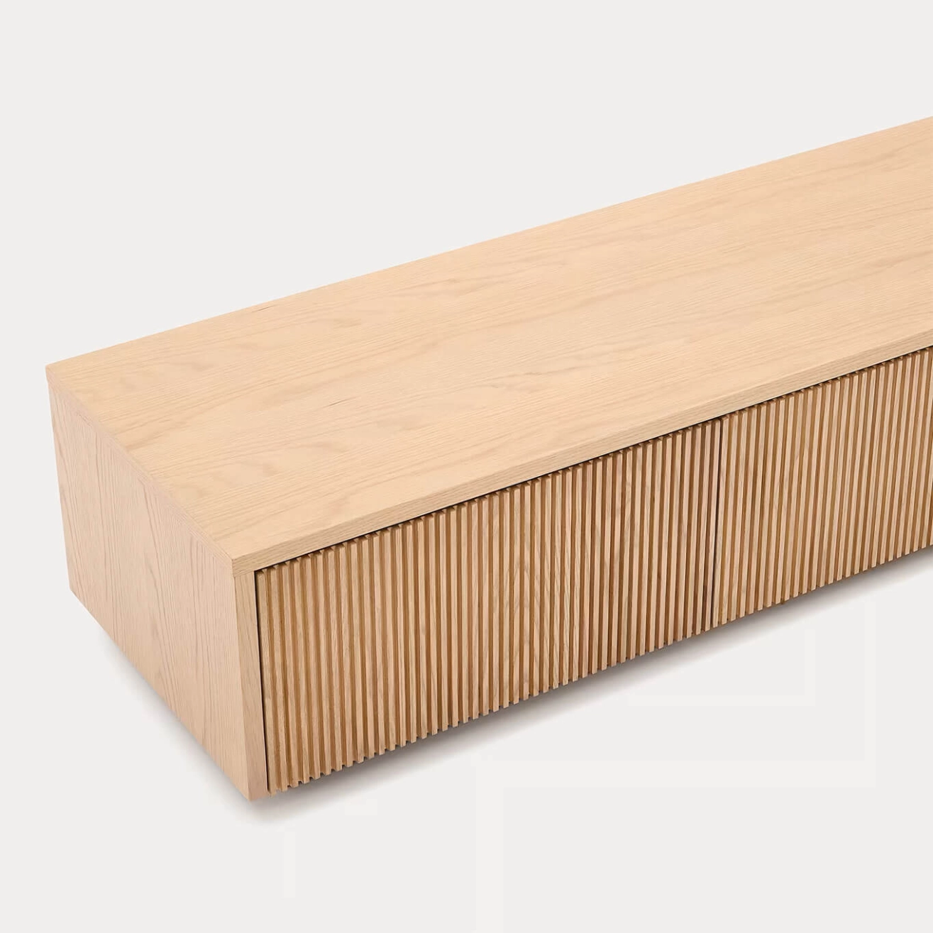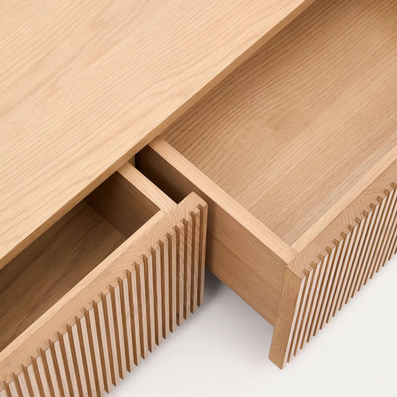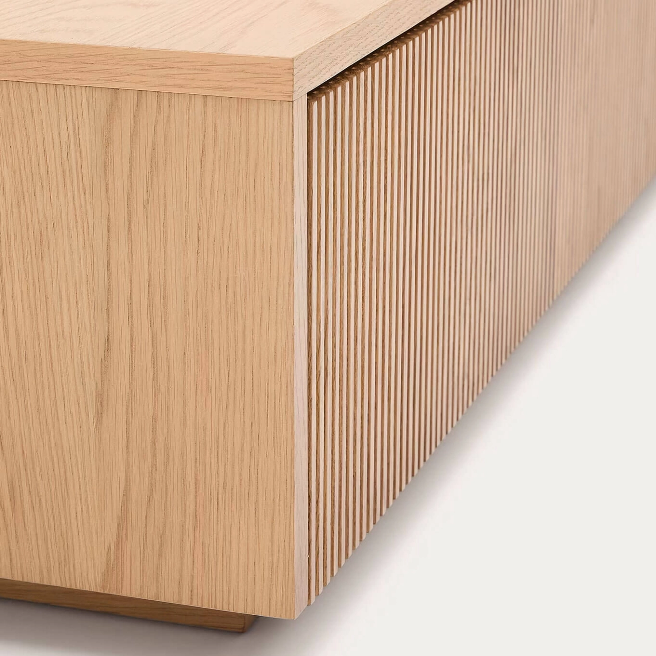 Helvine est un meuble TV en placage de chêne de 200 x 30 cm FSC 100 %, conçu par Kave Home. Cette collection intemporelle s’inspire de la simplicité de la nature : le verre apporte lumière et met en valeur les couleurs et textures de l’intérieur, tandis que le bois apporte chaleur et élégance. Le meuble TV dispose de 4 tiroirs à ouverture à pression avec glissières dissimulées réglables, et d’une base ajustable pour compenser les différences de niveau. Sa structure interne est en bois certifié FSC 100 % provenant de forêts gérées durablement, garantissant qualité et respect de l’environnement. Combinable avec le reste de la collection Helvine, il allie fonctionnalité et esthétique naturelle pour s’intégrer harmonieusement dans tous les espaces.