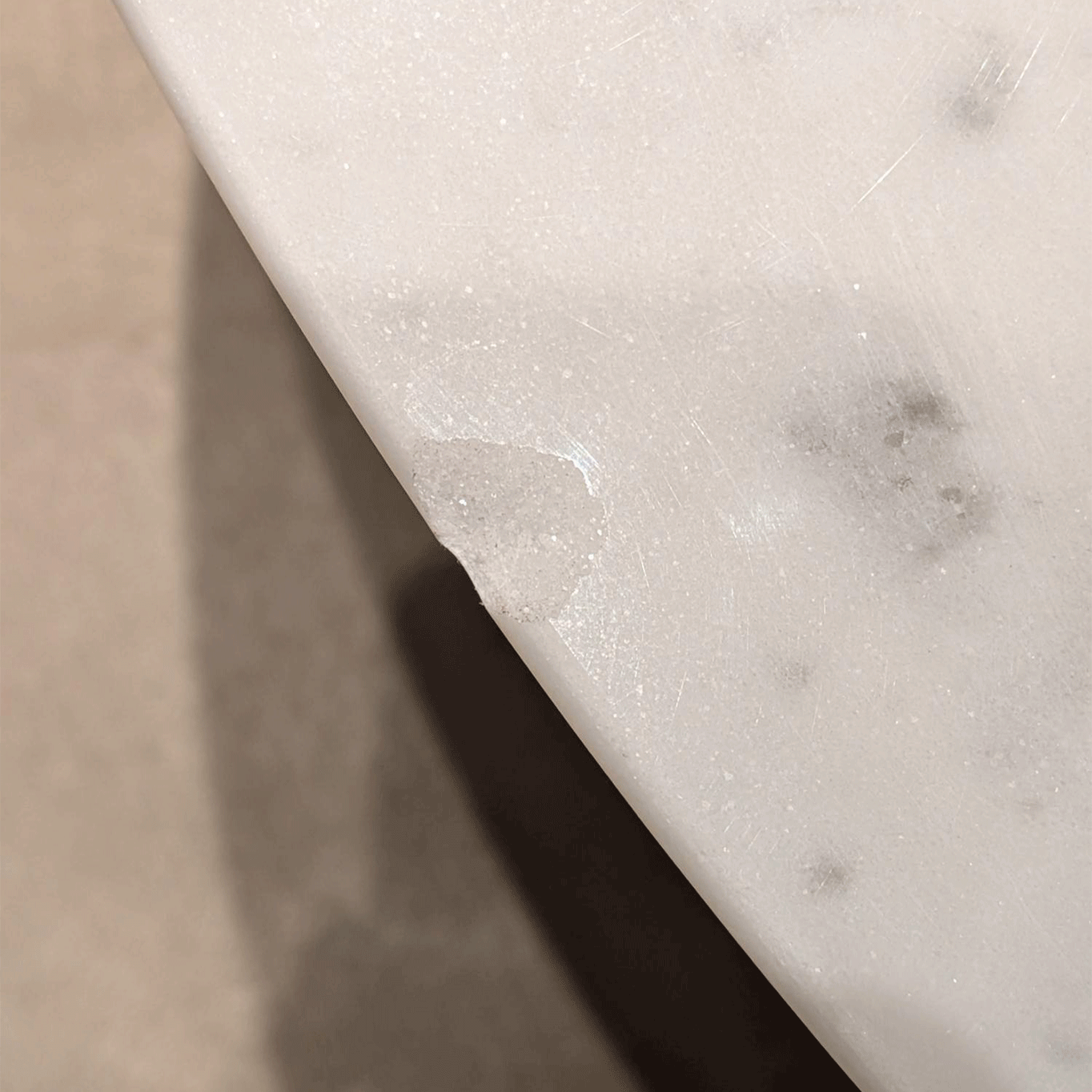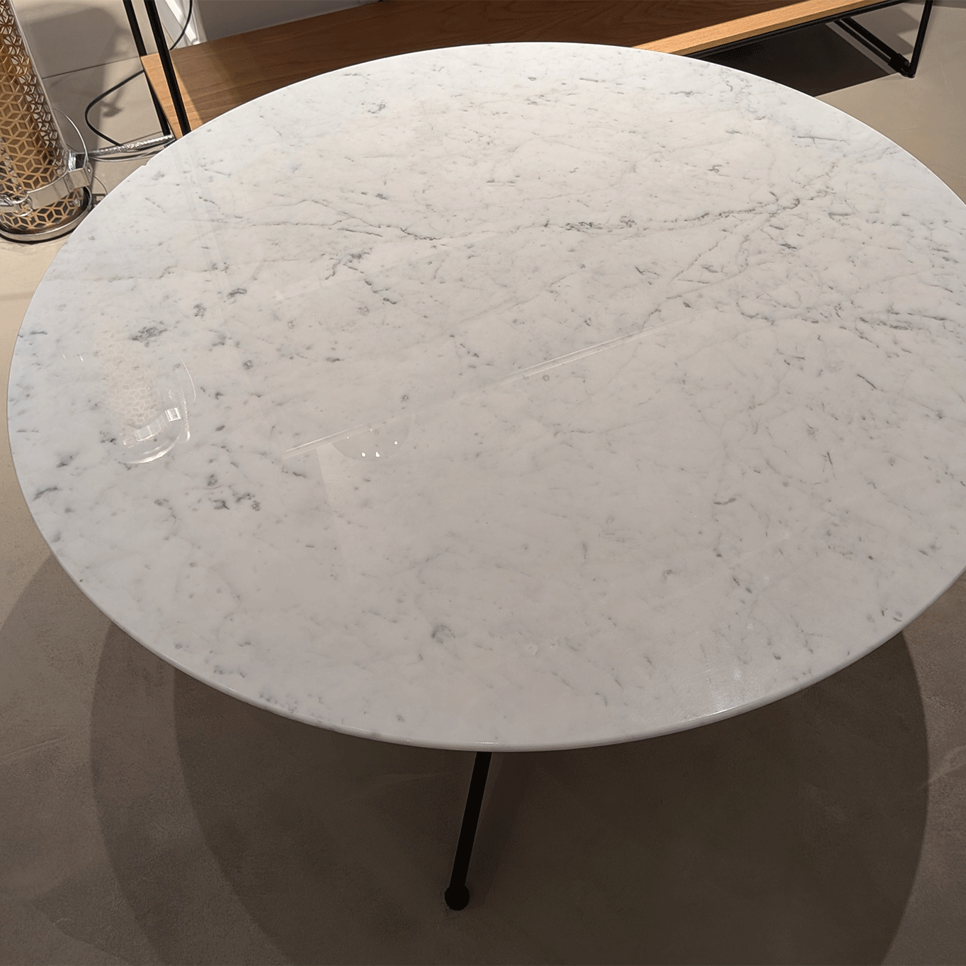 Plateau en marbre de Carrare blanc et structure métallique noire