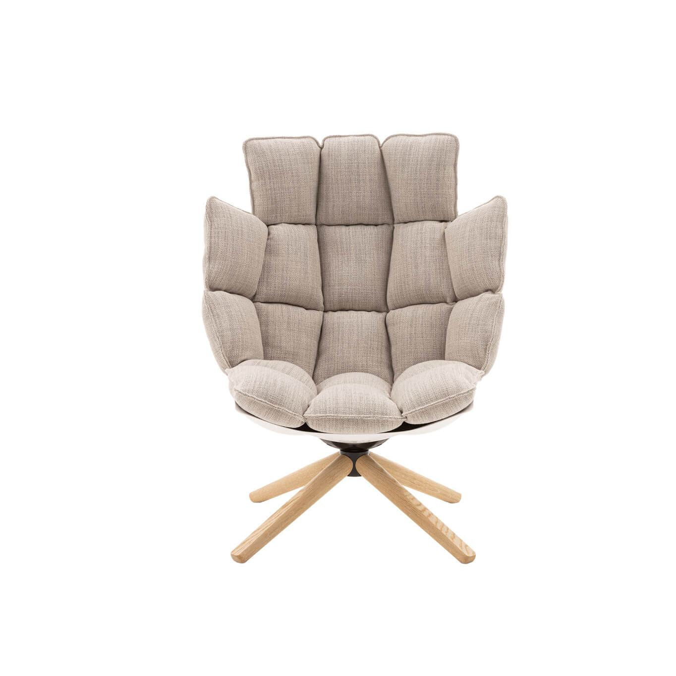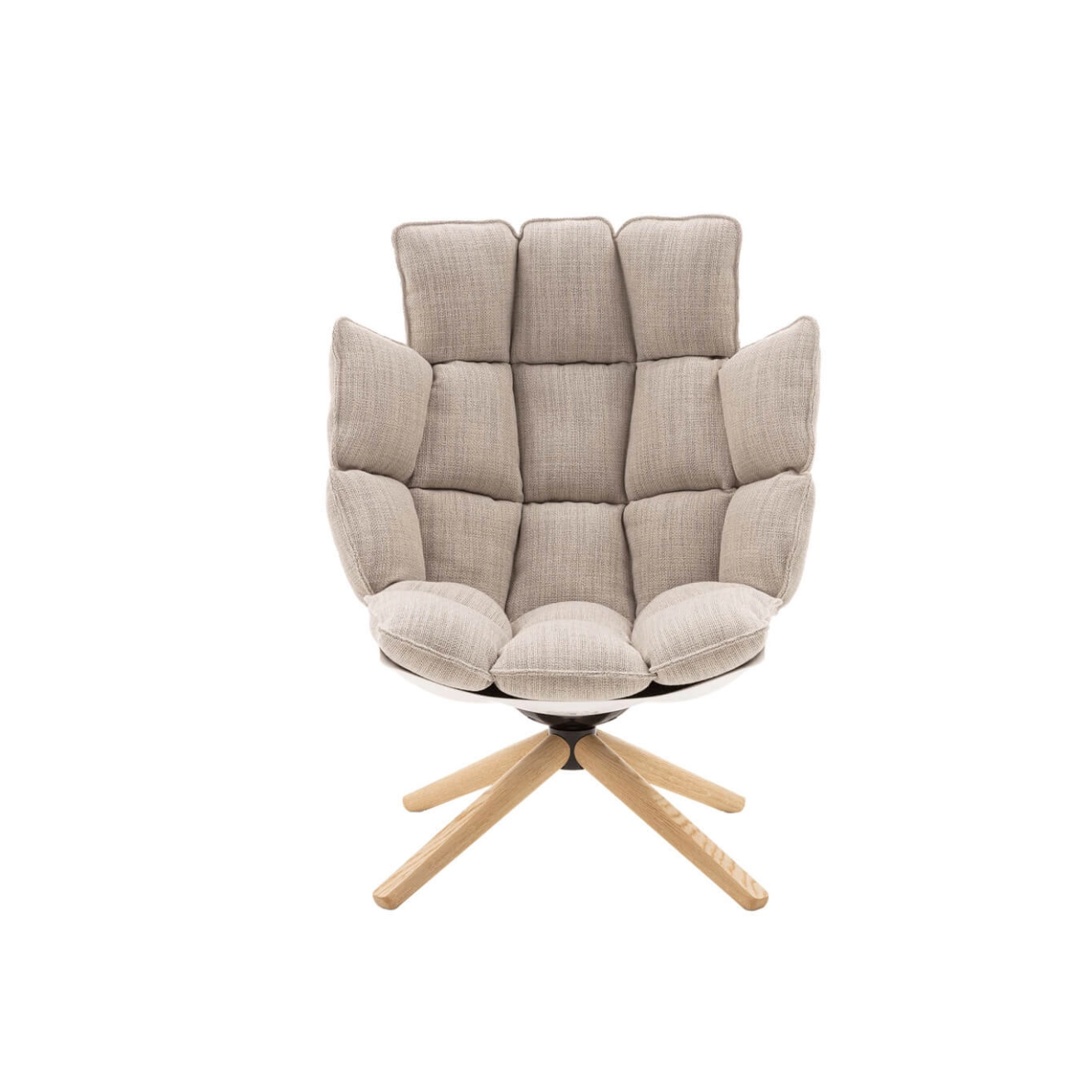 Le fauteuil haut Husk, conçu par Patricia Urquiola en 2011 pour B&B Italia, allie confort et éco-durabilité dans un design qui rend hommage à la douceur et invite à la détente. Doté de coussins généreux et capitonnés, il offre une assise enveloppante et ultra-moelleuse. Sa coque rigide est fabriquée en Hirek, un matériau plastique innovant composé de polymères recyclés et recyclables. Le coussin d’assise se prolonge naturellement en appuie-tête, renforçant le confort et le soutien. Présenté ici dans un élégant tissu rattier corde, Husk incarne l’équilibre parfait entre esthétique, ergonomie et conscience environnementale.