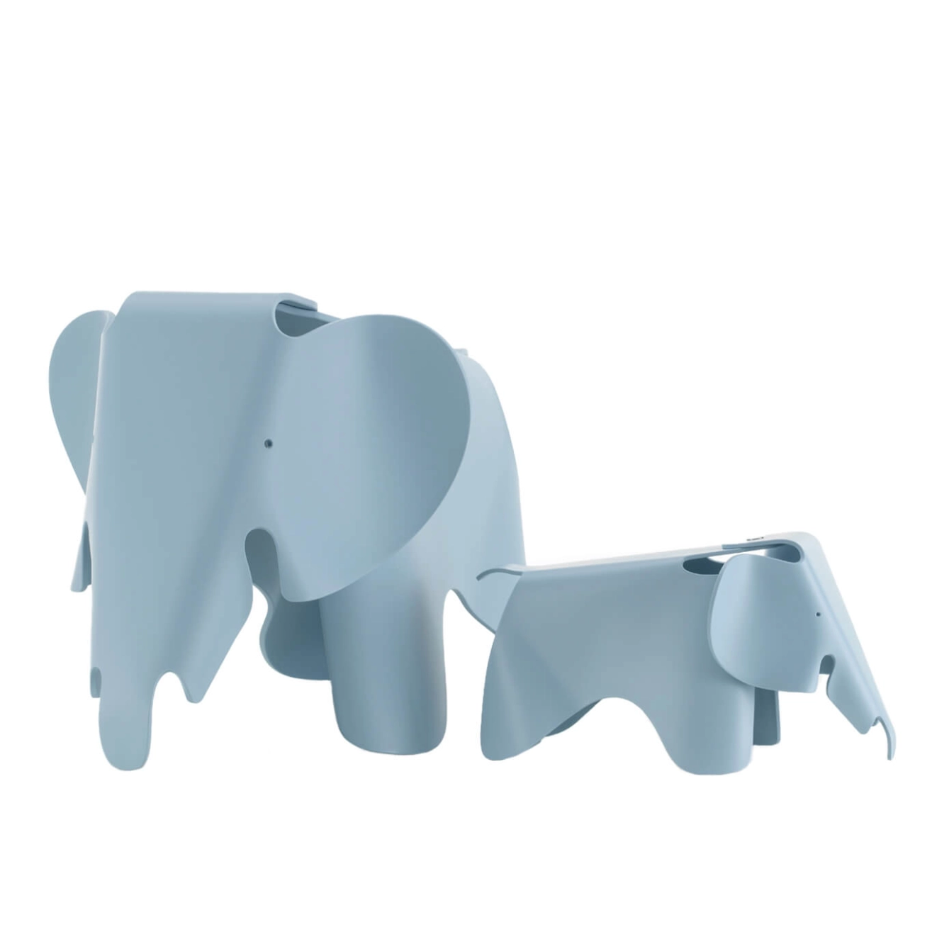 En 1945, Charles et Ray Eames ont imaginé un éléphant en contreplaqué, conçu à l’origine comme un jouet pour enfants mais jamais produit en série. Aujourd’hui, Vitra réédite ce modèle emblématique en matière plastique, rendant cet objet à la fois ludique et décoratif accessible à tous. L'Eames Elephant peut être utilisé comme jouet, y compris à l'extérieur, ou comme objet de décoration ludique que ce soit pour une chambre d'enfant ou dans tout autre espace de la maison. Les enfants peuvent monter sur cet animal, avec son regard attendrissant et ses grandes oreilles, il invite à la fois au jeu et à la tendresse. La version small, au design identique mais à une échelle plus réduite, est désormais disponible en plastique recyclé et recyclable, provenant de déchets industriels.