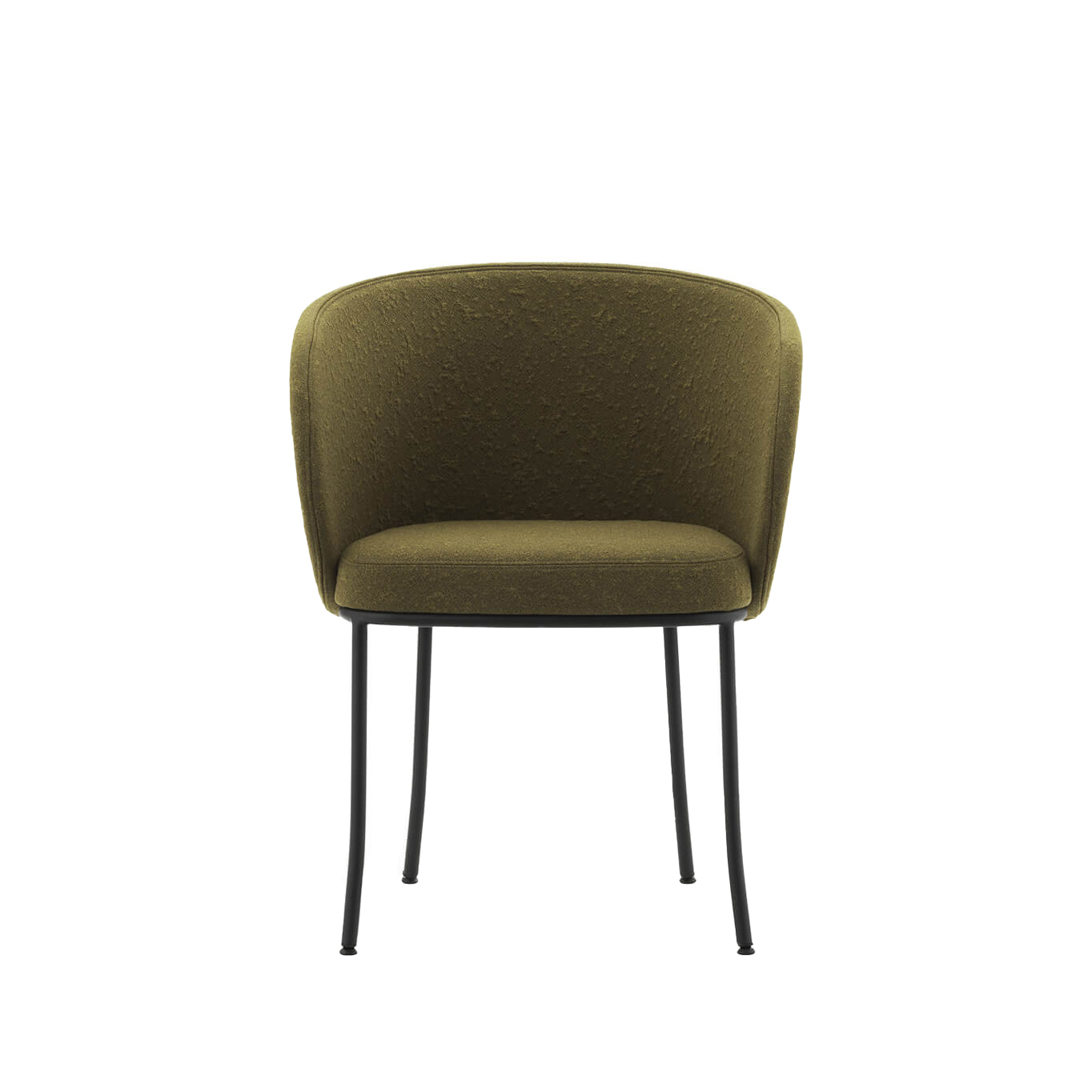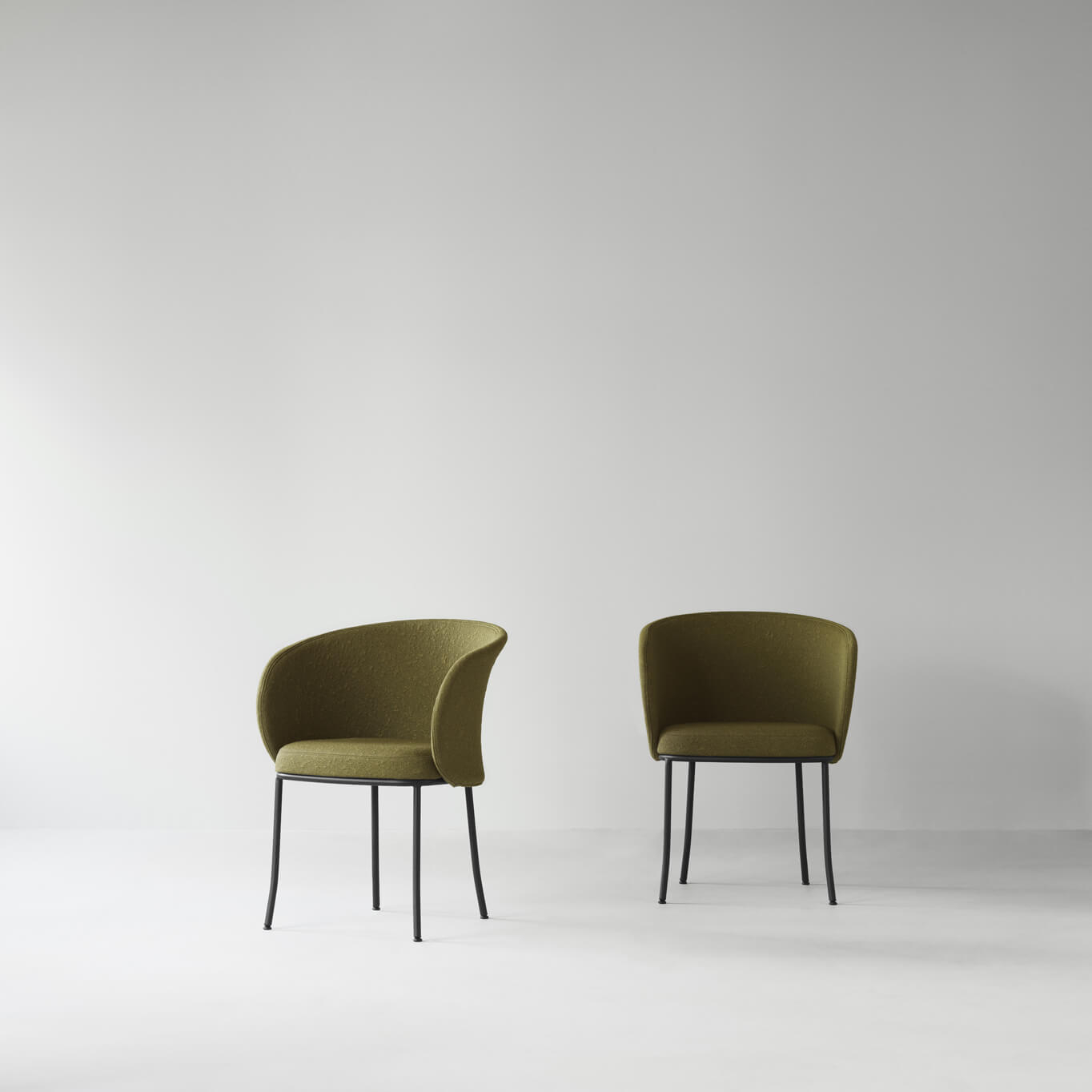 Le fauteuil Knit, signé Yuchen Wu pour Normann Copenhagen, se distingue par une silhouette gracieuse et une approche textile innovante. Ici, on le découvre avec une structure sobre en acier noir mat, alliant modernité et élégance discrète. Le dossier et l’assise sont façonnés d’un textile tricoté en polyester recyclé, tendu avec soin pour créer une image fluide, à la fois légère visuellement et généreuse au toucher. Les bords du dossier sont légèrement arrondis, conférant un enveloppement doux et un soutien confort optimal. Le piètement tubulaire lui donne une assise stable et un profil aérien : les pieds élancés et les tubes fins créent un contraste subtil avec l’assise volumineuse. Le design évoque une certaine légèreté, tout en conservant une présence affirmée dans l’espace. Esthétique et ergonomique, le fauteuil Knit de Normann Copenhagen s’adapte aussi bien à une salle à manger contemporaine qu’à un espace lounge ou un bureau créatif. Son mélange de douceur textile et de lignes épurées insuffle une atmosphère sophistiquée, sans superflu. C’est un fauteuil pensé pour l’intimité visuelle et sensorielle, invitant à s’asseoir et prolonger le regard. Simple mais raffiné, Knit est une belle illustration du design nordique moderne, humanisé et responsable.